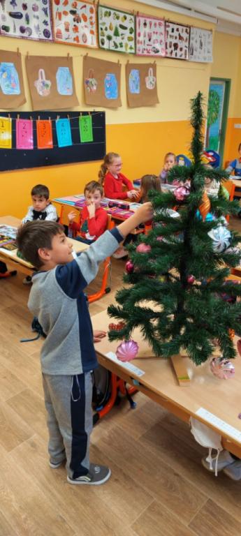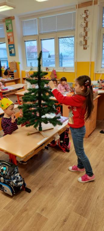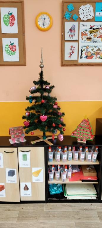 Advent je období plné příprav na Vánoce. Také ve škole se na Vánoce pilně připravujeme. Připomněli jsme si adventní tradice a povídali si o tom, jak se na vánoční svátky chystáme doma. Děti jsou už celé natěšené a nedočkavé. Viktorka Vrbová s maminkou nám upekly krásnou perníkovou chaloupku, která je jako vystřižená z pohádkové knížky. Společně s dětmi jsme si ve třídě ozdobili Vánoční stromeček a děti vyprávěly o tom, jaká jsou jejich vánoční přání. Aby dětem čekání na Ježíška lépe utíkalo a věděly, kolik dní do Vánoc ještě zbývá, vyrobili jsme si také ve škole svůj vlastní adventní kalendář. Myslím, že se nám opravdu povedl, a tak jsem ho rychle vyfotila, abychom se stihli pochlubit, než ho děti celý snědí.
