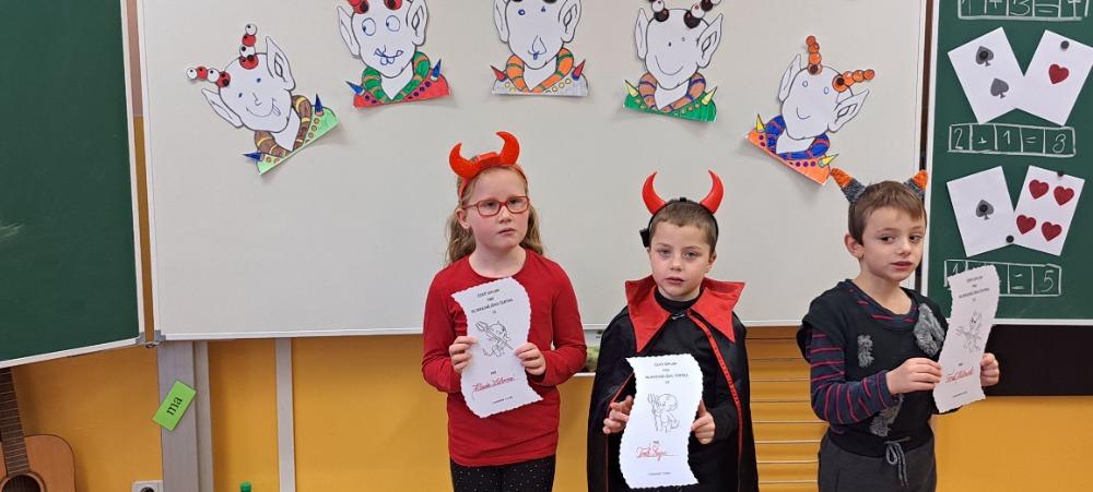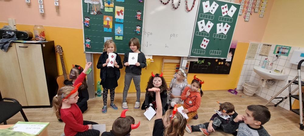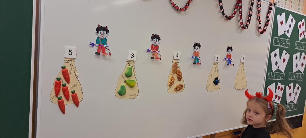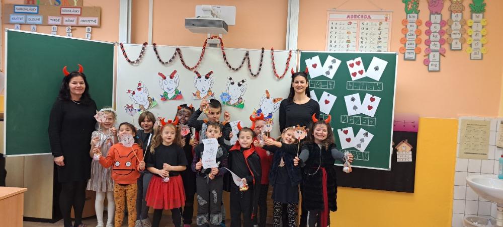 Již tradičně se v naší škole 5. prosince koná čertovská škola. Ani letošní rok nebyl výjimkou. Děti, paní učitelka i paní asistentka, všichni jsme přišli v čertovském. Na děti čekaly čertovské úkoly. V pekelném českém jazyce musely poskládat slova z písmenek, která se nepořádným čertíkům rozsypala v pytlích. V ďábelské matematice jsme si dali mariáš s čertovými obrázky. Také proběhla čertovská bojovka na chodbě školy. Během celého vyučování jsem, také hráli různé zábavné čertovské hry. Na závěr pekelného vyučování také přišel Mikuláš s velkými čerty. Někteří hříšníci měli opravdu nahnáno, když slyšeli číst svá jména v Knize hříchů. Čerti si ale nakonec nikoho neodnesli, protože jsme je uchlácholili pěknou písničkou s tanečkem. Mikuláš rozdal dětem balíčky a byli vyhodnoceni nejhezčí a nejpilnější čertíci. Tímto bychom také rádi poděkovali paní učitelce Dáše Pospíšilové a jejím děváťákům.