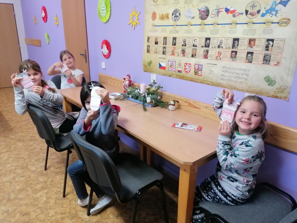 Předvánoční čas ve třídě 2. B si umíme pěkně užít. Krom krásného adventního kalendáře jsme vyráběli vločky z papíru na výzdobu šaten a nástěnku nám ozdobili veselí čertíci.