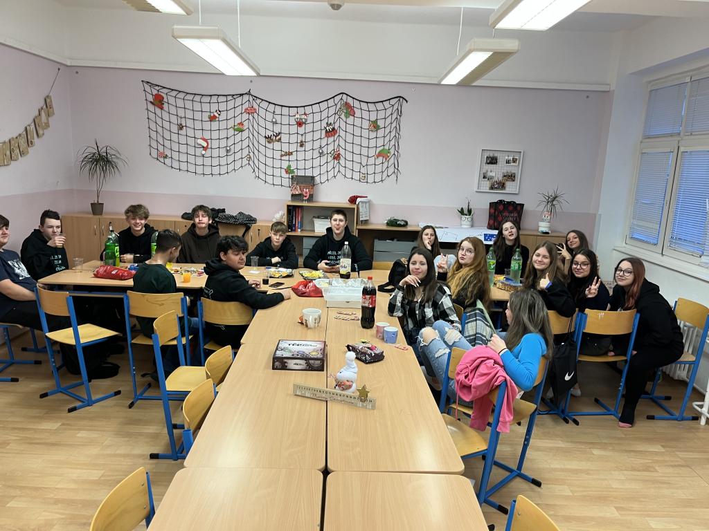 Dne 22. 12. 2022 jsme si v 9. A uspořádali vánoční besídku. V pohodové vánoční atmosféře jsme si připravili občerstvení, zahráli hry, povídali o Vánocích a tradicích. Na závěr každý žák dostal od spolužáka malý dárek. Domů odcházeli všichni spokojeni a vánočně naladěni.