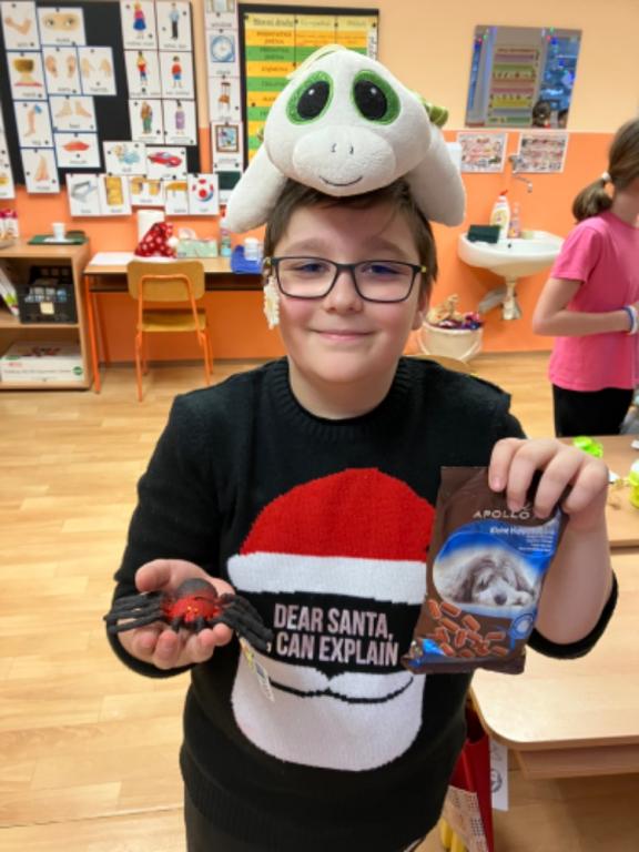 Po svačině jsme si všichni opět sedli se stolům a začali si rozdávat dárečky. U nás ve třídě funguje systém, že si každý žák vylosuje žáka, kterému přinese nějakou maličkost. Myslím si, že se tento zvyk dětem líbí a všichni děti byly z dárečků opravdu nadšené.