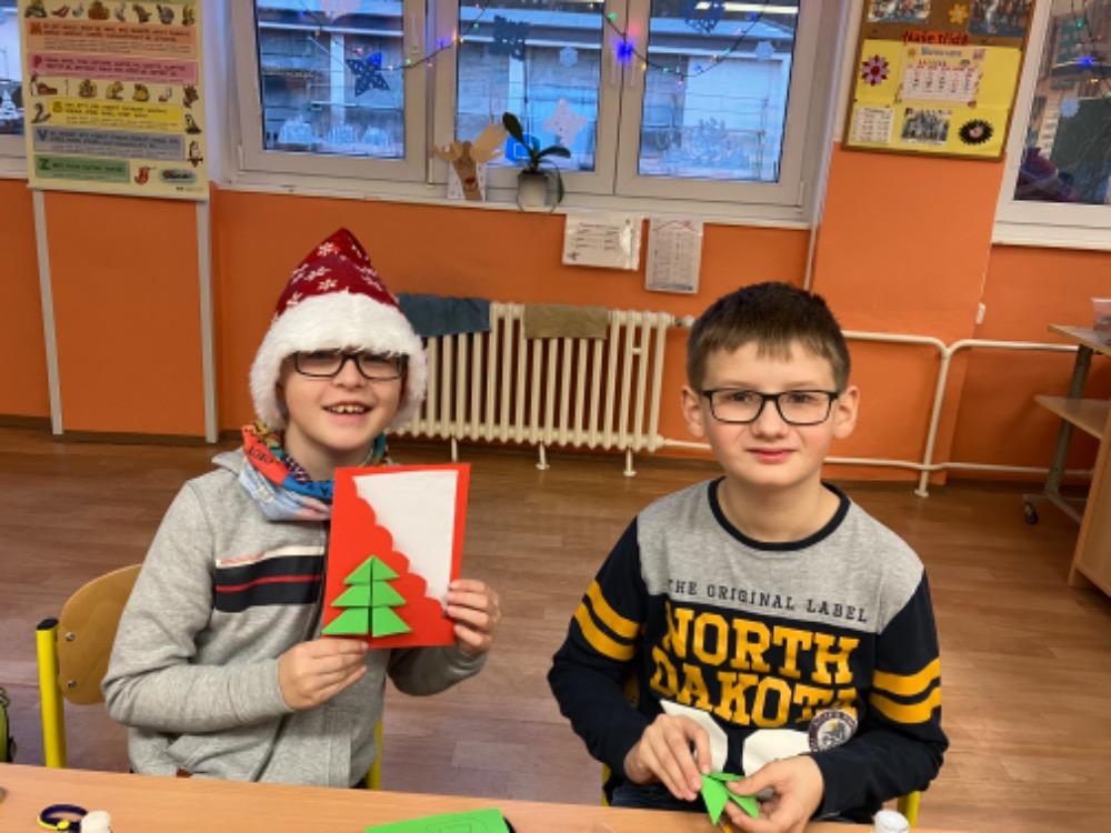Během druhé a třetí hodiny jsme vyráběli vánoční přáníčka, která byla opravdu obtížná a náročná, ale děti je zvládly na výbornou.