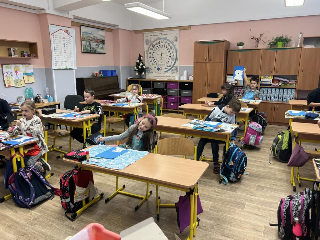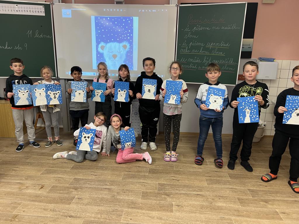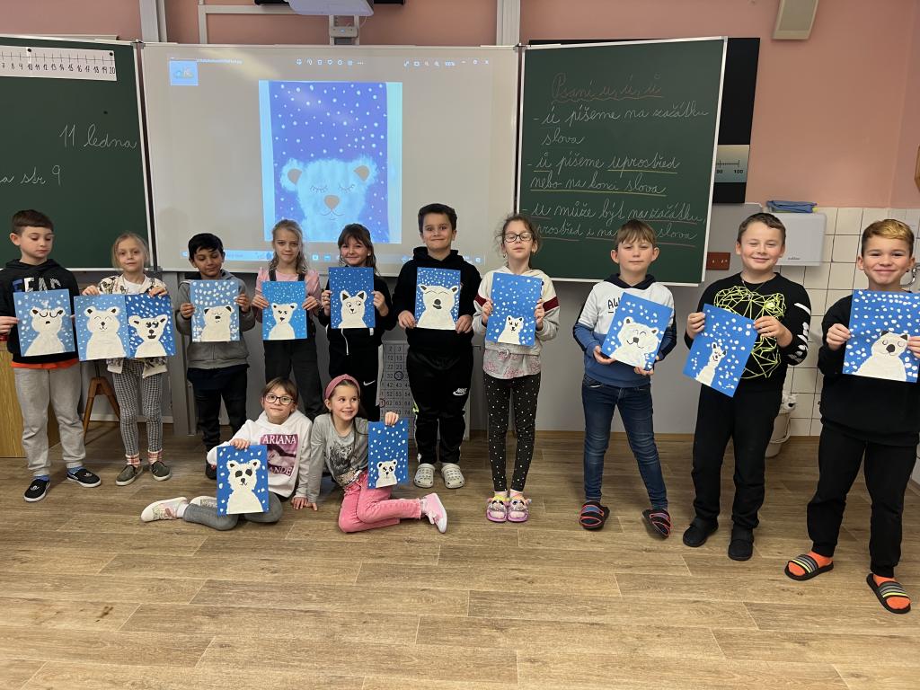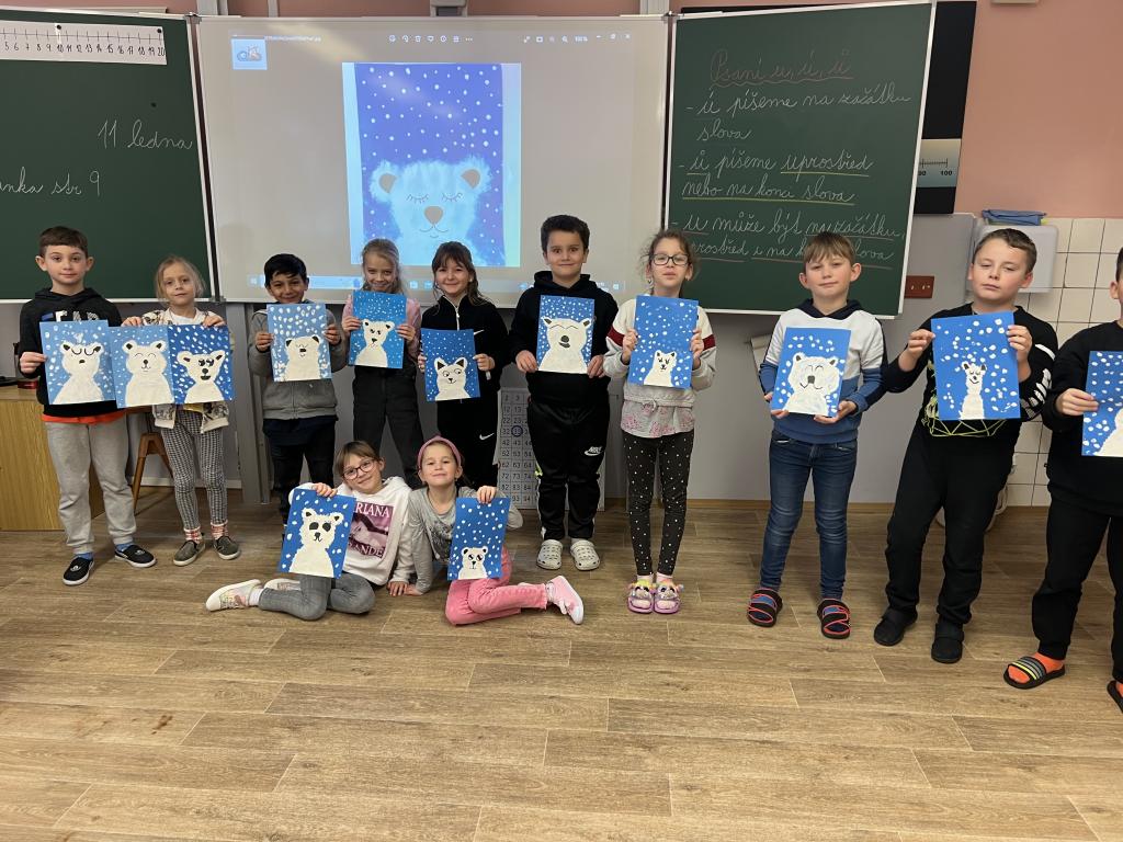 Hodiny výtvarné a pracovní výchovy jsme si druhý lednový týden zpříjemnili tvorbou zvířátka, které má rádo zimu, ryby, najdeme ho většinou na ledové kře nebo ve vodě. Už víte? Ano, je to lední medvěd. U tvoření jsme si užili spoustu zábavy a legrace. Každý medvídek je jiný. Některý je silnější, jiný slabší, některý spinká, jiný je vzhůru či usměvavý. Dokonce jsme jim dali i jména. Medvídek Anežka, medvídek Bobík či medvídek Honzík.