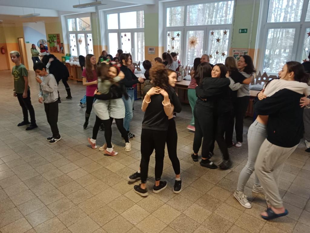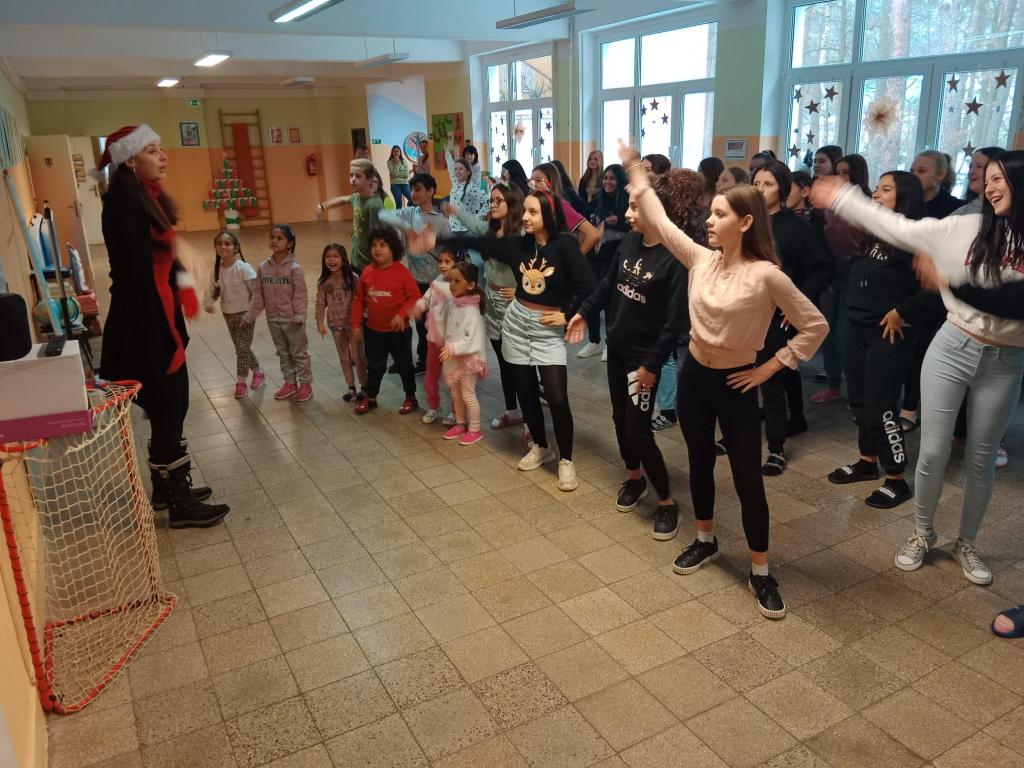 V předvánočním období jsme chtěli uspořádat něco netradičního. Třídní besídky, plnění adventních úkolů, výzdoba třídy a „dárečková“ jsou už zažitou klasikou, ale vše se stále odehrává jen v útulném prostředí vlastní třídy. Vystoupení z komfortní zóny, vstoupit do společného prostoru a účastnit se činnosti se všemi ostatními žáky i učiteli celého druhého stupně, to už je jiný oříšek. Postavili jsme se výzvě a s nasazením jsem se zúčastnili akce „roztančených přestávek“, které se odehrávaly ve svačinových přestávkám, v předvánočním týdnu. Napětí, nervozita, stud, rozpačitost a zároveň radost a těšení se na další den a další kolo tančení, to byly pocity, které jsme popisovali, po prvním pondělním „dovádění“. Třetí roztančený den už jsme si připadali jako „profíci“ a bez pomoci jsme dokázali popsat, co všechno, kromě samotného tance, jsme touto hromadnou aktivitou zvládli natrénovat. Romana Sitařová