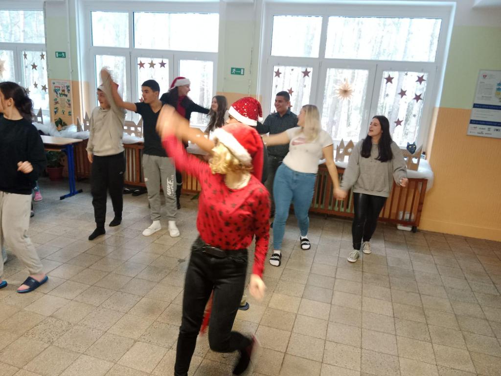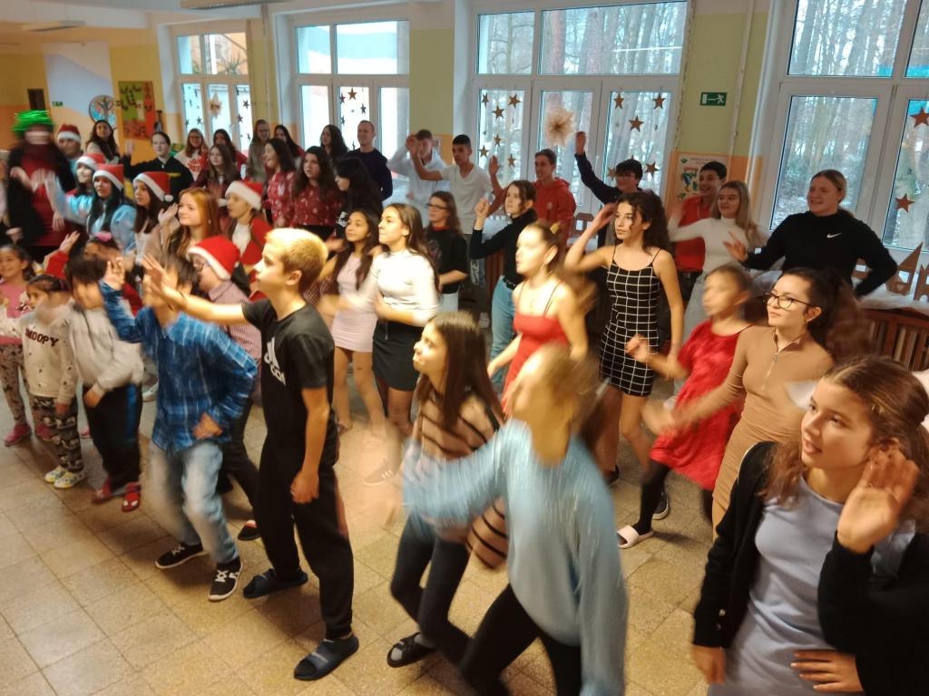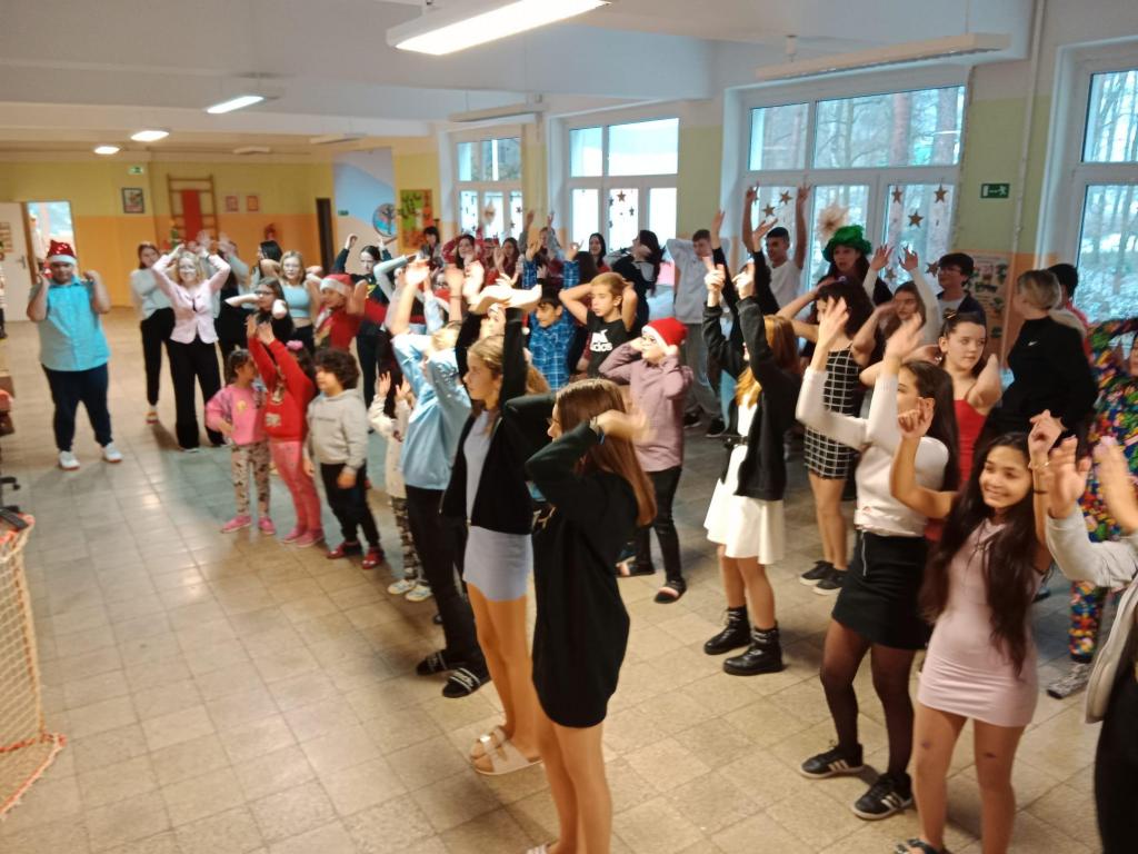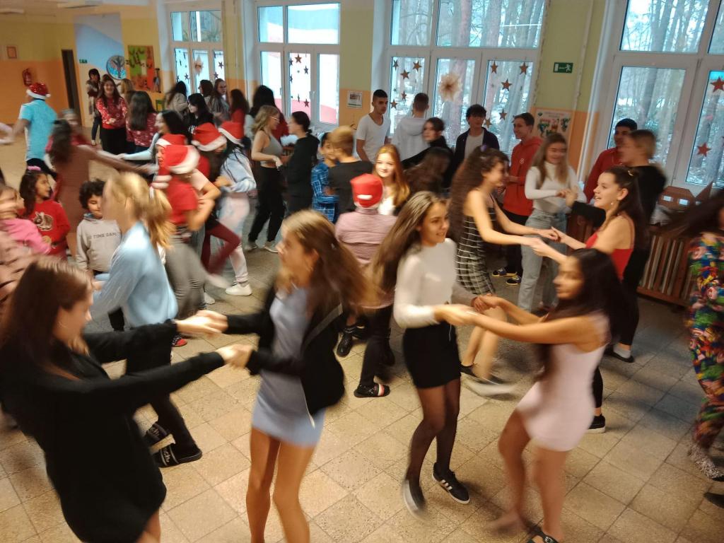 Ve dnech 19. - 21. 12. společně celý druhý stupeň tancoval tance s vánoční tématikou na chodbě. Neúčastnili se jen žáci, ale také někteří učitelé. Celé to probíhalo o svačinové přestávce, kdy se všichni žáci přesunuli na chodbu ke sborovně a společným tancem ladili vánoční atmosféru po celé škole. Vánoční atmosféru jsme neladili pouze hudbou a tancem ale také svým vánočním oblečením a doplňky. Samozřejmě to všem moc slušelo, ale na paní učitelku Sitařovou nikdo neměl
