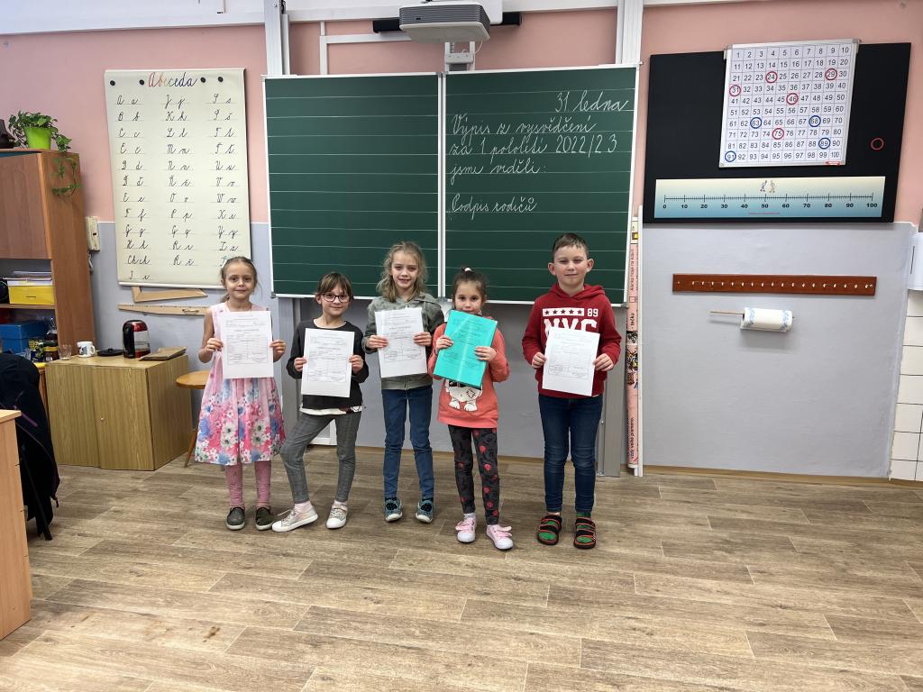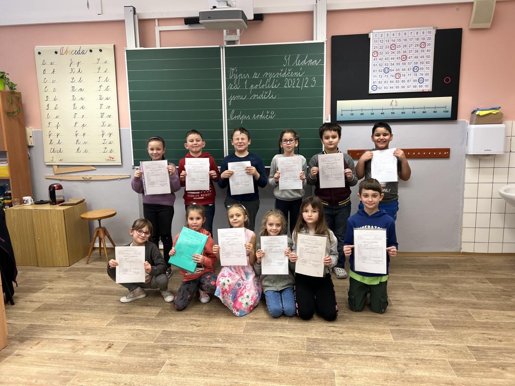 31. leden patří tradičně ke dnům, kdy dostávají žáci vysvědčení. Nejinak tomu bylo i tento školní rok. My ve 2. A jsme si ještě před rozdáváním vysvědčení, na které jsme se mimochodem moc těšili, podělili se svými spolužáky o to, co bychom měli příští pololetí zlepšit. Někdo by měl více číst, jiný trénovat psací písmenka či počítání. I když je ještě hodně co zlepšovat, čekaly nás na vysvědčení převážně krásné známky. A teď hurá na jarní prázdniny, kdy si nejen odpočineme, ale zároveň nabereme síly do dalších školních dnů.