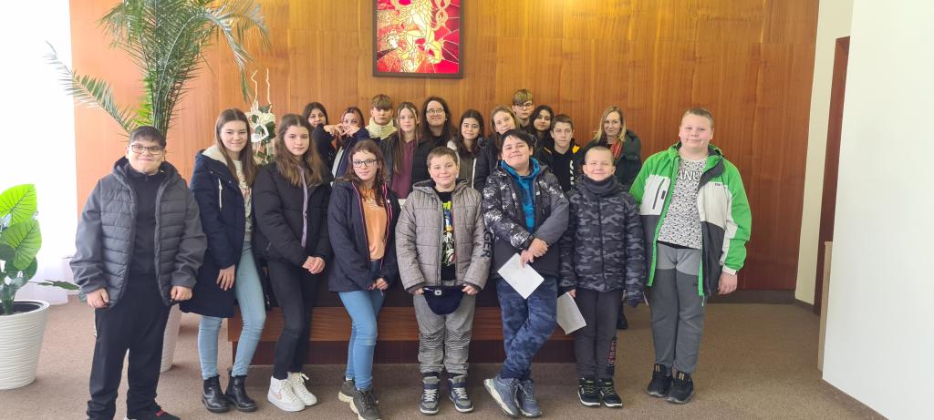 Tématem aktuálních hodin naší výchovy k občanství jsou v šesté třídě samospráva, komunální volby a vůbec tak povšechně život v obci. Po přísunu určité porce teorie jsme se rozhodli vyrazit tak říkajíc do terénu a potkat se i s praxí. Pro tento účel nám za cíl posloužil náš městský úřad, kde nám paní tajemnice Fašánková vyšla velmi ochotně vstříc. Ve středu 15. února krátce před dvanáctou hodinou jsme tak hlavním vchodem vstoupili do světa úředníků a zastupitelů. Byla zrovna doba oběda a zaměstnanci si užívali zaslouženou pauzu, a tak jsme nenahlédli do všech místností, ale některé kanceláře jsme přeci jen prozkoumali a z úst bezmála dvaceti šesťáků znělo, že to tam mají hezký. Od oběda jsme vyrušili i pana starostu Januru, který ho na chvíli přerušil, a umožnil tak žákům nahlédnout i do své kanceláře, kde se mimo jiné schází ke svým jednáním rada města. Dále jsme si prohlédli zasedací místnost a bez povšimnutí nezůstal ani informační systém na stěnách, ten byl pro žáky důležitý, poněvadž z něj mohli získat nejednu odpověď do svých pracovních listů, které měli vyplnit. Naším závěrečným zastavením se stala obřadní síň, kde se žákům líbilo asi nejvíce, a to snad i pro to, že se do ní někteří vrátili třeba i po dvanácti letech, které uplynuly od chvíle, kdy je tehdy město vítalo do života coby malé a čerstvě narozené občánky. Mnozí ze žáků pak nalezli své jméno v pamětních knihách a někteří také se zájmem nahlédli do městských kronik. Objektem pozornosti zvídavých šesťáků se stala i kovová insignie, kterou na krku povětšinou nosí při slavnostních příležitostech pan starosta a k vidění je i při konání svateb. Myslím, že to byla vcelku příjemně strávená hodinka, která přinesla žákům několik zajímavých informací. Děkujeme všem úředníkům a zejména paní Fašánkové za to, že nás nechali nahlédnout pod pokličku jejich tolik potřebné a užitečné práce.