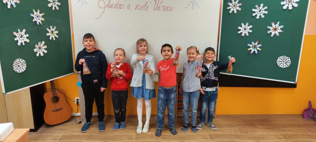 V den, kdy se měla konat vánoční besídka, si s dětmi připomněla některé vánoční tradice. Děti zdobily perníčky, krájely jablíčka a hledaly hvězdičku. Také si společně zazpívaly koledy. Na závěr tohoto pěkného dne našel každý školáček nadílku pod stromečkem. Paní asistentce Martině Rancové bych chtěla tímto velmi poděkovat.