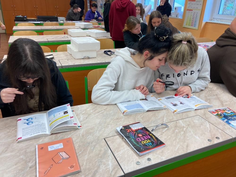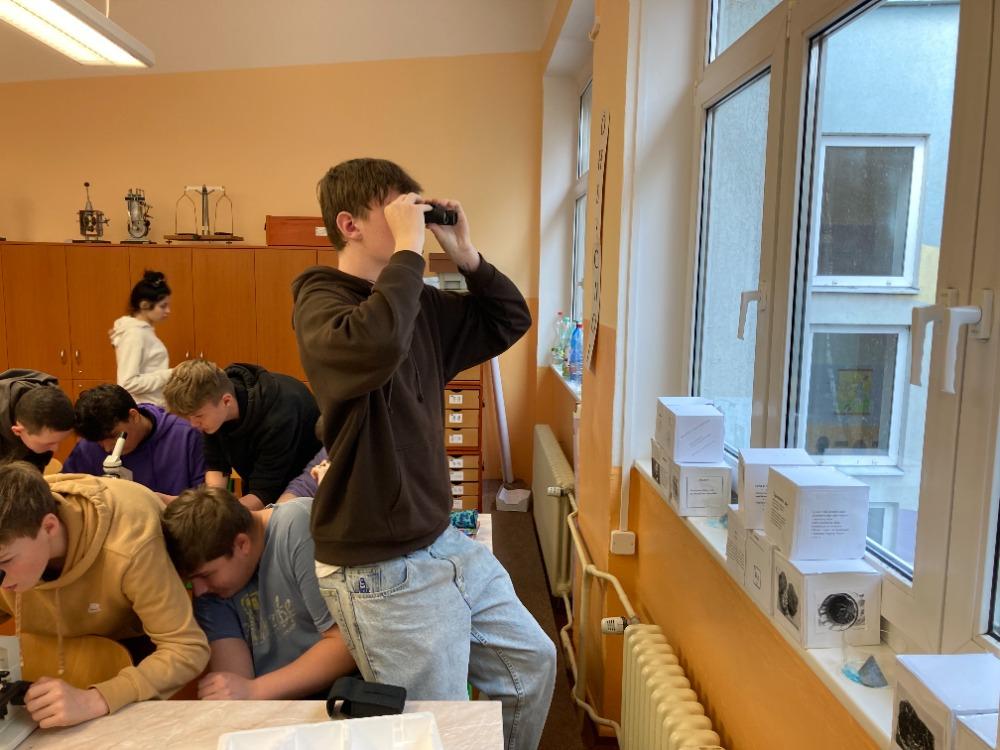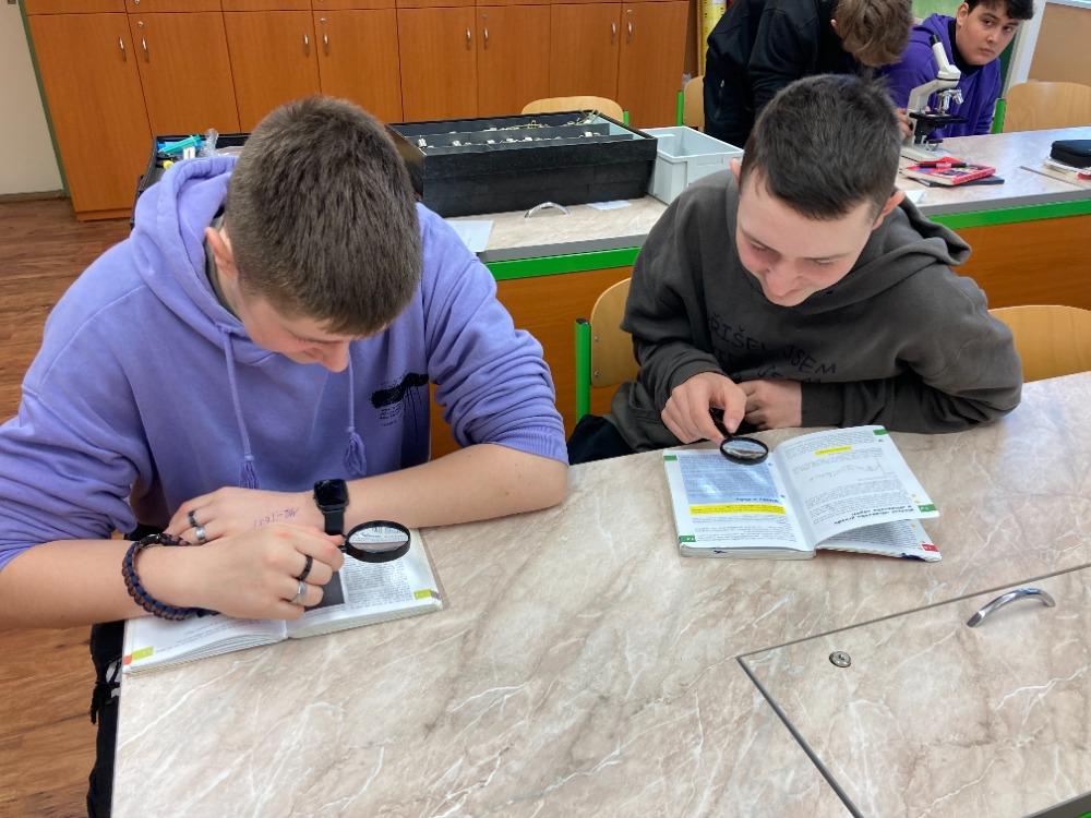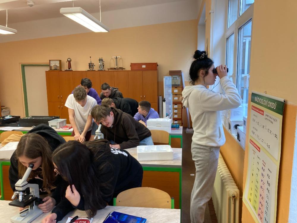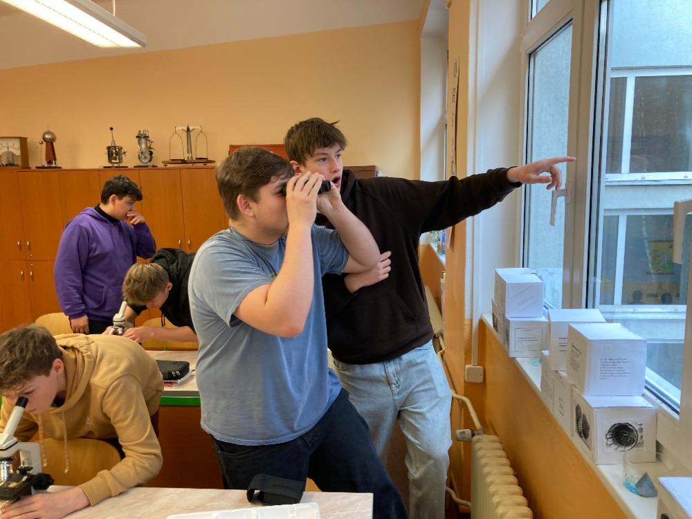 Několik vyučovacích hodin jsme věnovali čočkám. Poznali jsme jednotlivé druhy čoček. Zkoumali jejich funkce. Již víme, že v lidském oku je čočka spojka, jak funguje a jak vidí zdravé oko. Také jak se promítá obraz oka krátkozrakého i dalekozrakého, a také kterými čočkami takovému oku pomoci. Další hodiny jsme věnovali optickým přístrojům. Po teoretické části jsme při vycházce pozorovali okolí jedním z optických přístrojů dalekohledem a vyzkoušeli si jeho užití v praxi. V následující hodině jme pozorovali objekty lupou a jednotlivé preparáty mikroskopem. Hodiny fyziky byly zajímavé. Těšíme se na další prima fyziky.