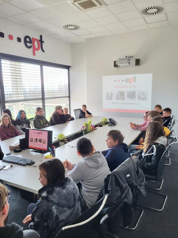 Dne 21.4. jsme se zúčastnili exkurze ve firmě EPT connector, s.r.o. Tato firma, která se nachází nedaleko naší školy se zabývá výrobou součástek pro elektrotechniku. Žáci se zprvu dozvěděli spoustu zajímavých informací o dané firmě, jejich působení a možnostech výroby. Následně jsme se odebrali k prohlídce celé firmy, při které jsme viděli provoz, výrobu a žáci se mohli na cokoliv zeptat. Na závěr prohlídky měli žáci možnost zahrát si vědomostní soutěž o ceny.