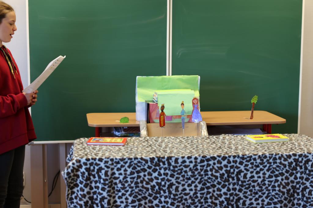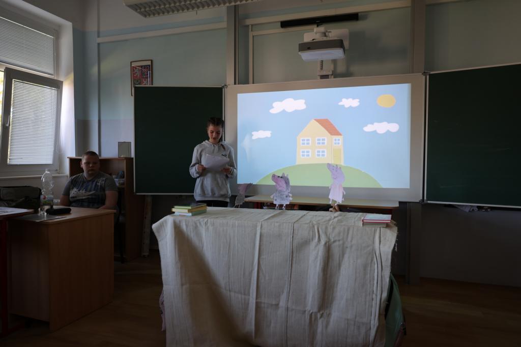 Pak již měli žáci asi ve čtyřčlenných skupinách několikahodinový prostor pro to, aby si vymysleli či obměnili již existující příběh, vyrobili kulisy a loutky, namalovali plakát a secvičili asi pětiminutové představení. Je jasné, že každá skupina měla svého leadera, ale svou troškou do mlýna přispěl tentokráte opravdu každý.