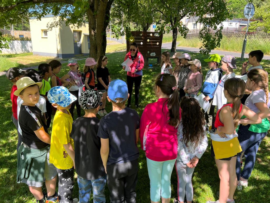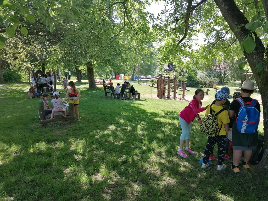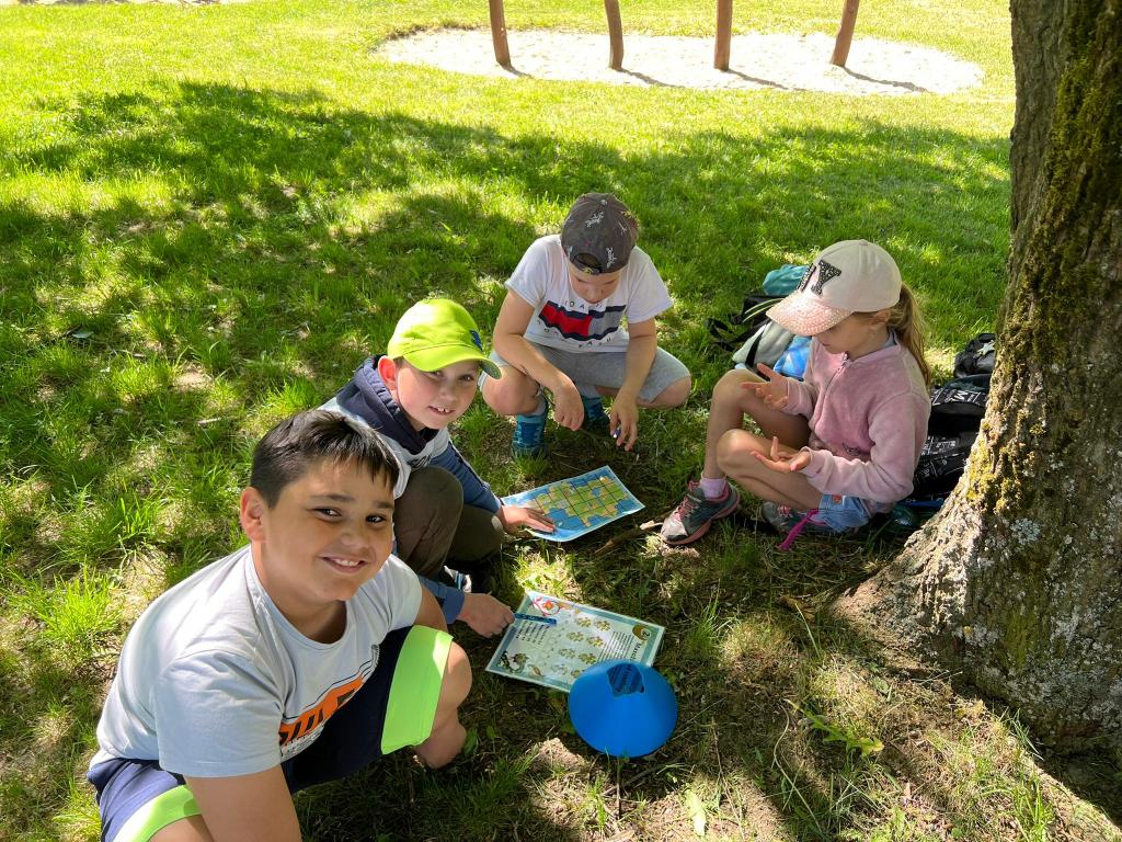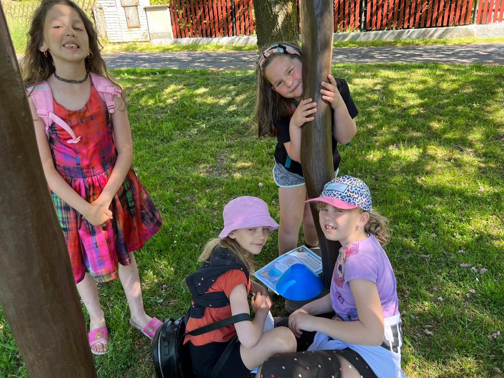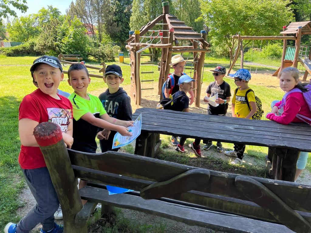 Velké překvapení nás teprve čekalo. Vydali jsme se na dobrodružnou cestu za pokladem. Žáci vytvořili šest skupinek. Každá skupinka dostala mapu, kam pomocí souřadnic zapisovala trasu k pokladu. Jednotlivé souřadnice děti získaly, pokud správně vyřešily úkoly na 8 stanovištích.