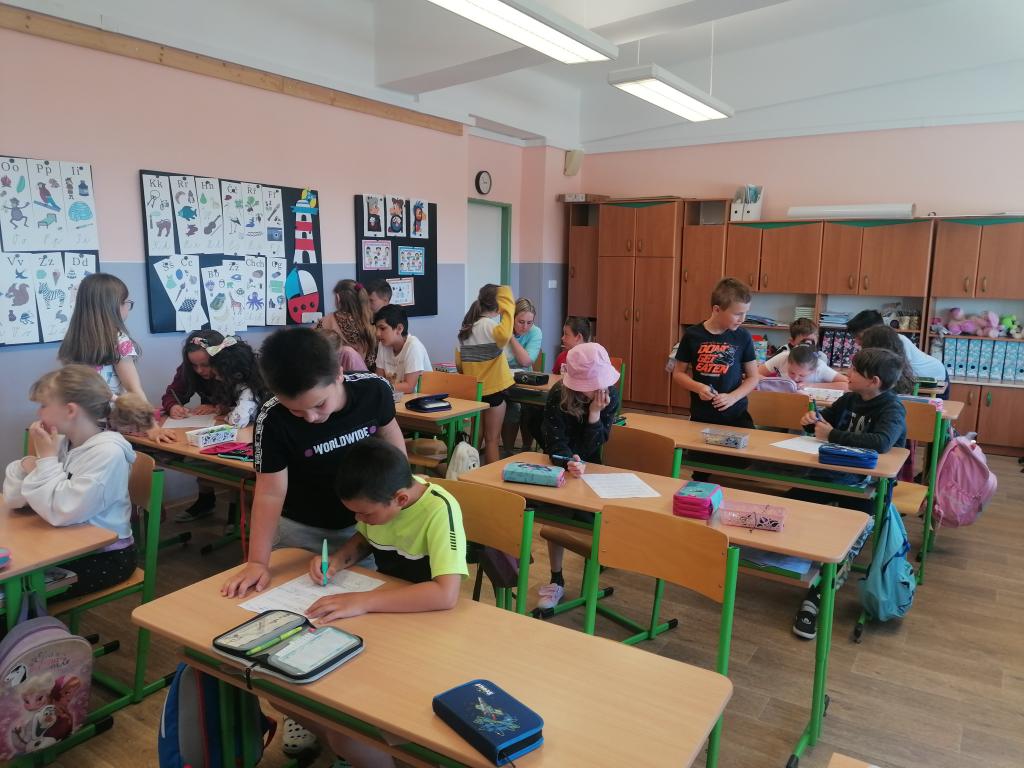 Nejprve se žáci v hodině českého jazyka prostřednictvím běhacího diktátu dozvěděli plno informací o tomto významném dni. Děti byly rozdělené do dvojic. Jeden z dvojice byl zapisovač a druhý získával informace z kartiček rozmístěných po třídě.