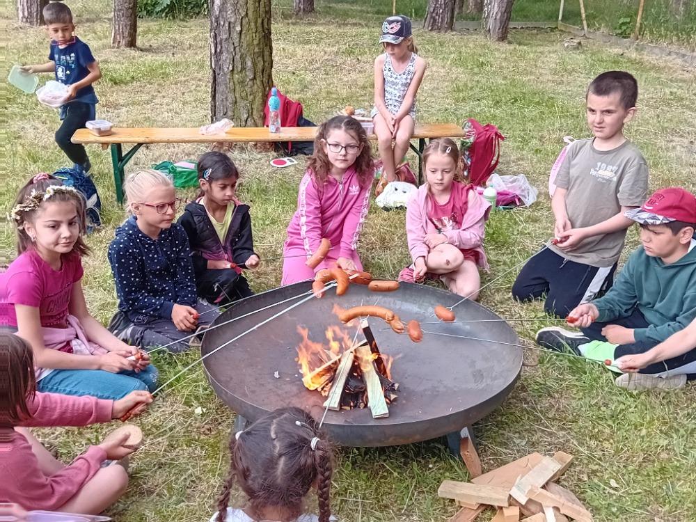 V pátek 2. června jsme společně s kamarády z přípravky a 4. B oslavili Mezinárodní den dětí. Počasí nám přálo, a proto jsme se vypravili do přírody k jezeru Boden. Čtvrťáci si pro nás nachystali zábavné soutěže a úkoly. Potom jsme hledali sladký poklad. U školy jsme si na závěr opekli buřty a zazpívali písničky u ohýnku.