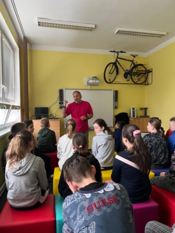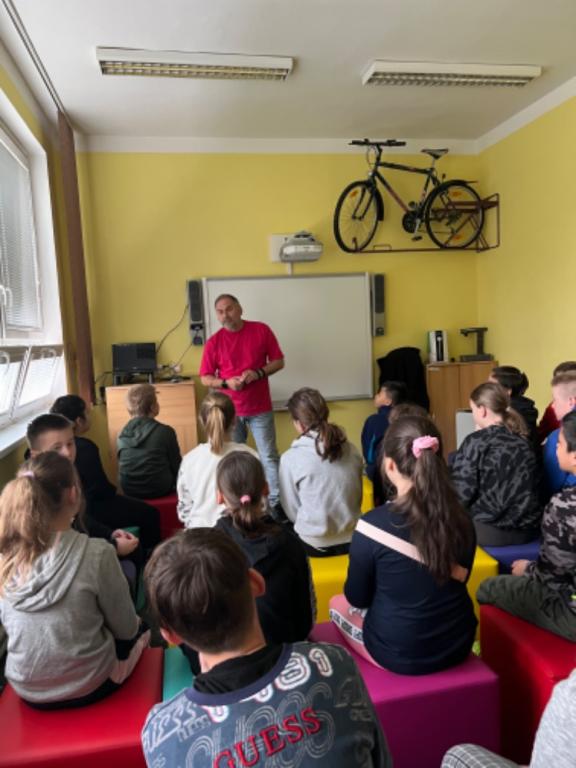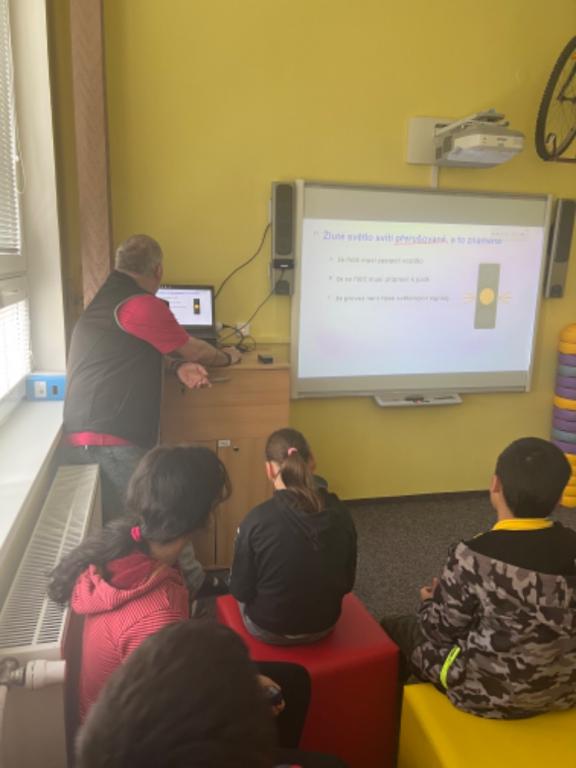 První část tvořila zajímavá a zábavná přednáška, na které si děti připomněly základní pravidla silničního provozu. Připomněly si, jaká je správná výbava cyklisty, jak má být správně vybavené jízdní kolo, jak vypadají a co znamenají základní dopravní značky. Nakonec přednášky si zkusily krátký lehký test, ve kterém si děti prověřily své postřehy a znalosti.
