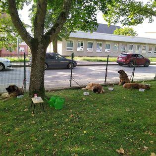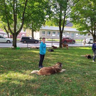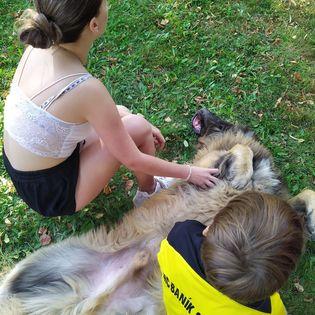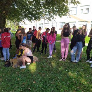 11. a 12. září dorazil do naší školy p. Bohuslav Stránský se svými čtyřnohými miláčky. I žáci 9. A si vyslechli vyprávění p. Stránského a zhlédli názorné ukázky ovládání, poslušnosti a cvičení leonbergerů. Také se žáci poučili, jak se zachovat a postupovat v kritických situacích, kdy setkání se psem nemusí být vždy příjemné. Někteří se mohli s „drobečky“ poňuchňat.