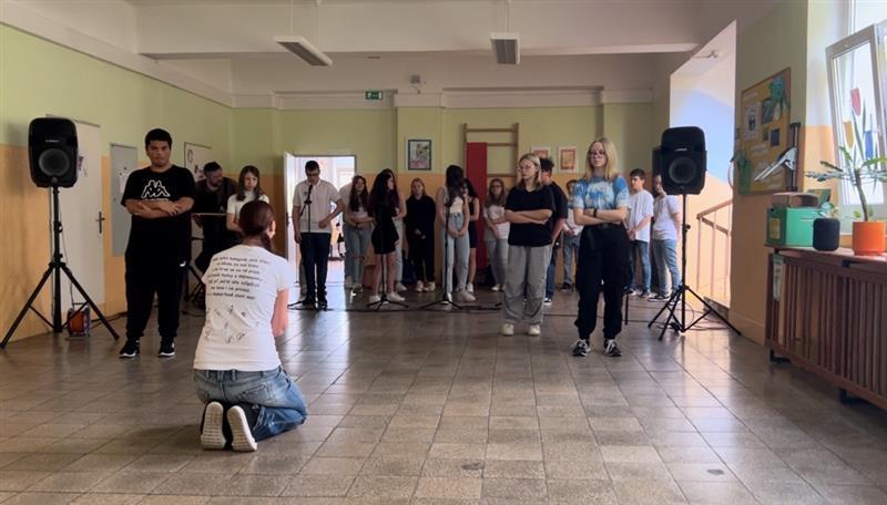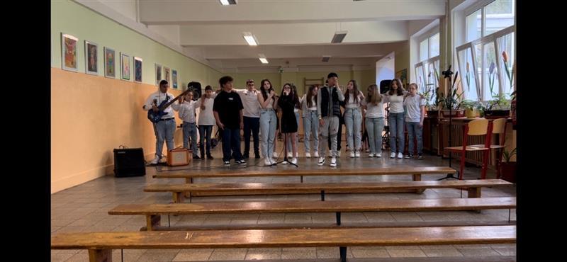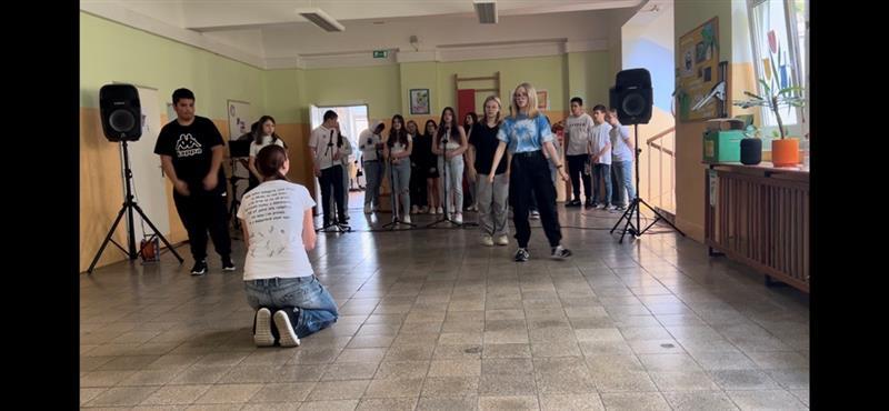 Sedmáci z áčka a béčka spojili své síly a zazpívali a zatančili na písničku Cizí zeď. Nácviky byly kruté, vyčerpávající i včetně toho vstávání na sedm. Nastal den "D" a tréma byla u většiny veliká. Před vystoupením jsme vykoukli ze dveří a viděli jsme tolik lidí! Vůbec jsme nechápali, kde se tam všichni vzali