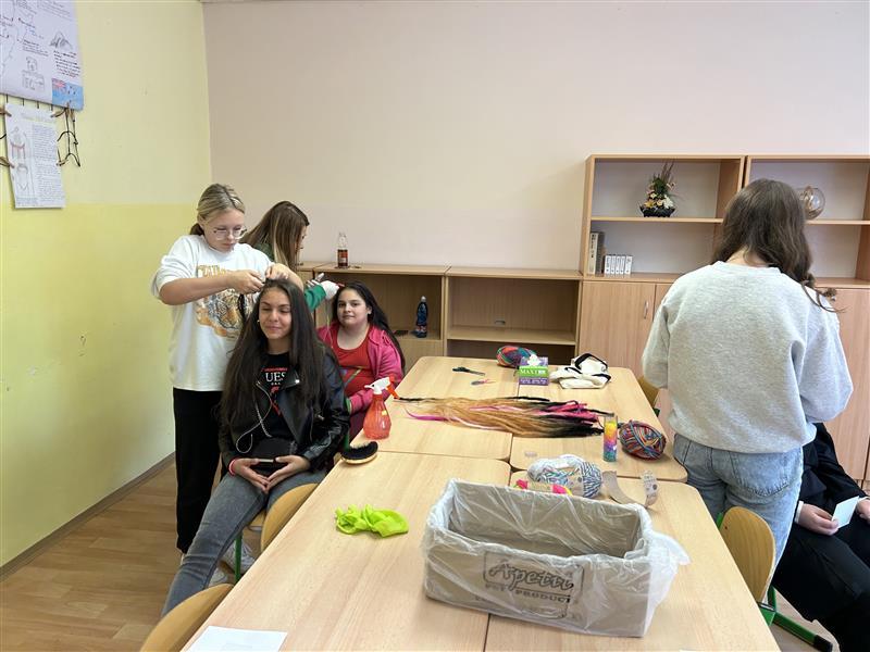 Několikatýdenní přípravy tvořivé dílny s nabídkou hotových náramků a klíčenek, stanoviště s různými technikami zaplétání vlasů a dílnička výroby náramků a klíčenek, malba obrazů na plátno do školní aukce, tím se prezentovala naše třída na této celoškolní akci. Užili jsme si příjemný den plný pestrých zážitků a pozitivní zpětné vazby od spokojených účastníků malých i velkých. Jak je u nás dobrým zvykem, a abychom toho neměli málo, spojili jsme ještě síly se spolužáky z paralelního ročníku a dlouhé hodiny volného času jsme trávili nácvikem tanečně-pěveckého vystoupení, kterým jsme potěšili diváky podvečerního představení.