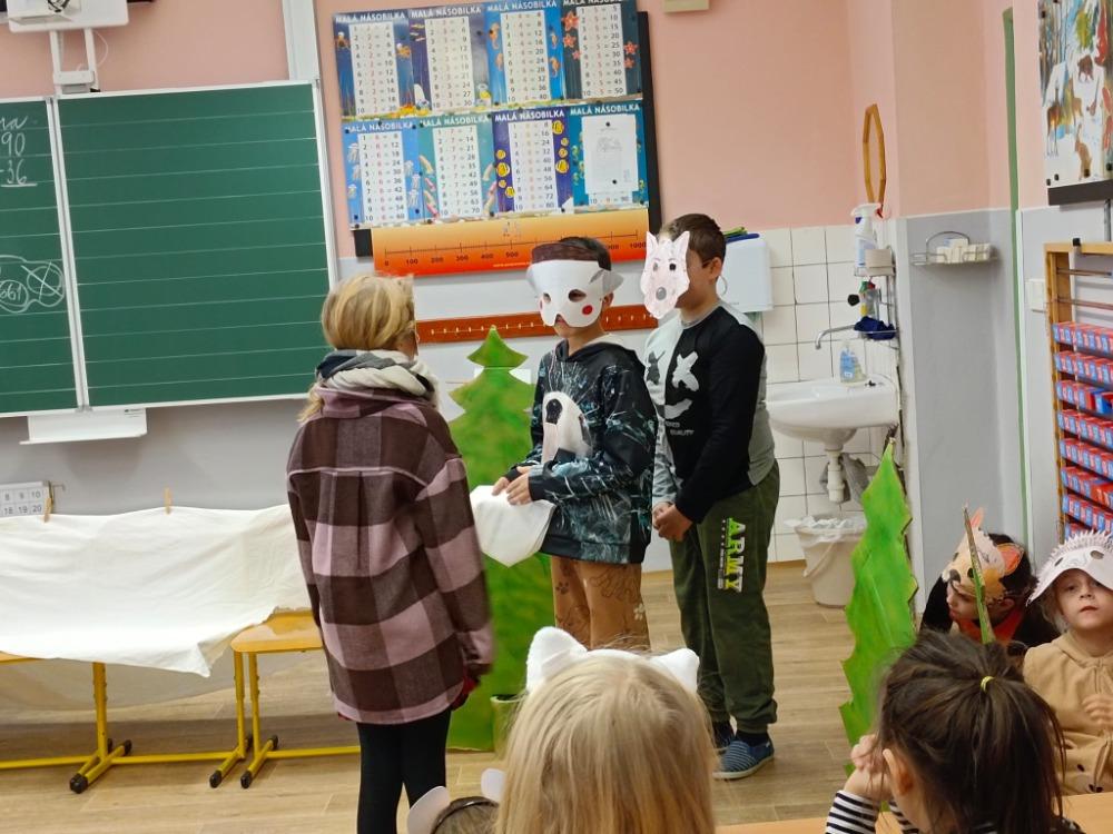 Žáci 3. A si připravili pro prvňáčky dramatizaci pohádky "Dědečkova rukavička". Postupně nás navštívili 1. A a 1. B. Přišel se na nás podívat také pan ředitel Mgr. Václav Riedl. Prvňáčkům se pohádka moc líbila, pan ředitel nás pochválil a my jsme měli radost, že se líbila.