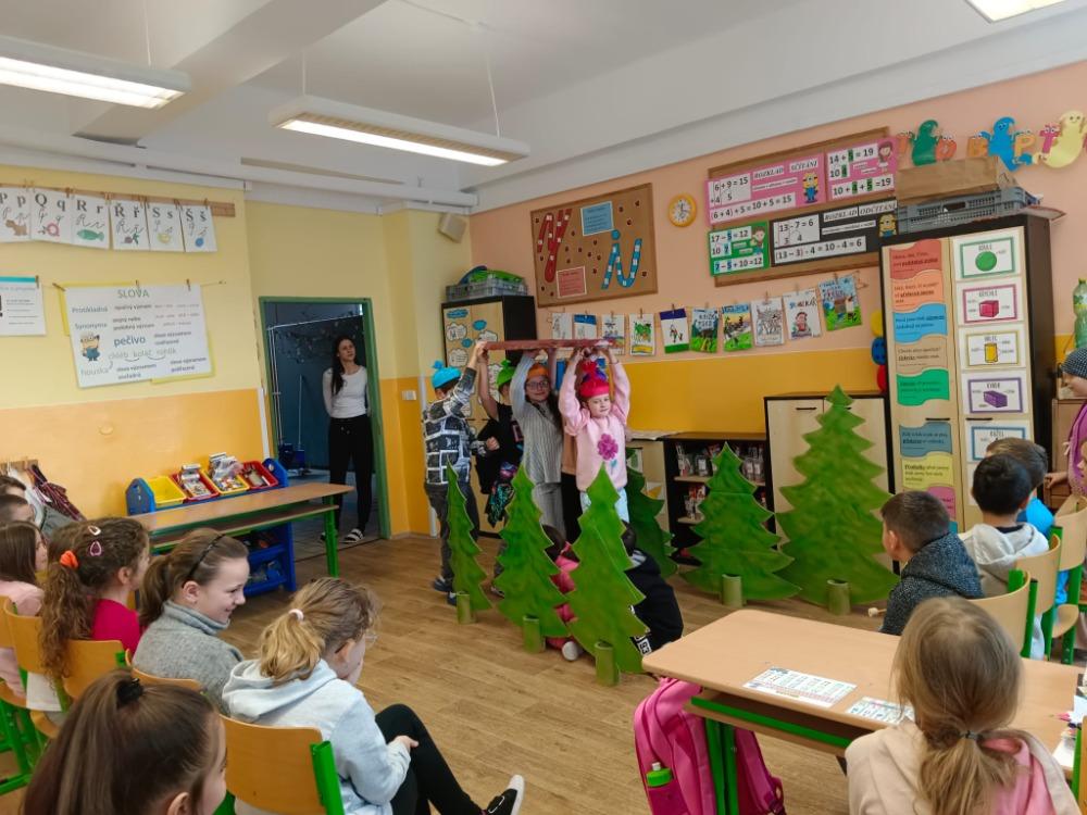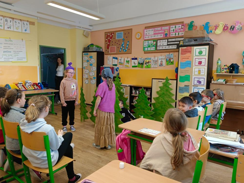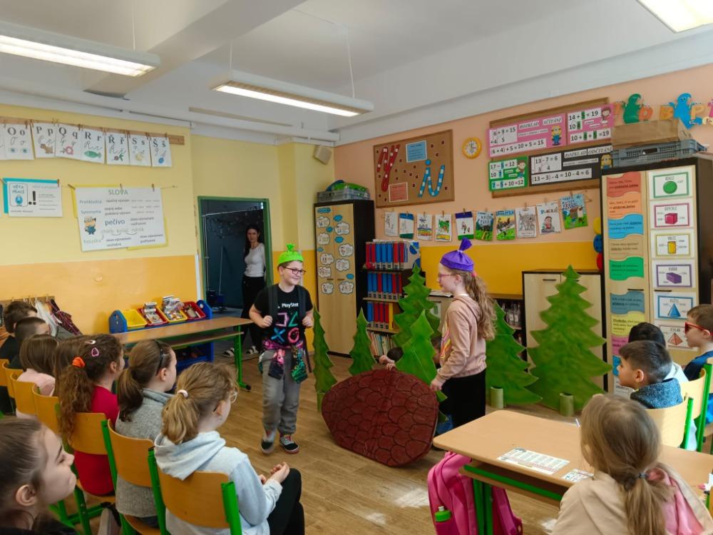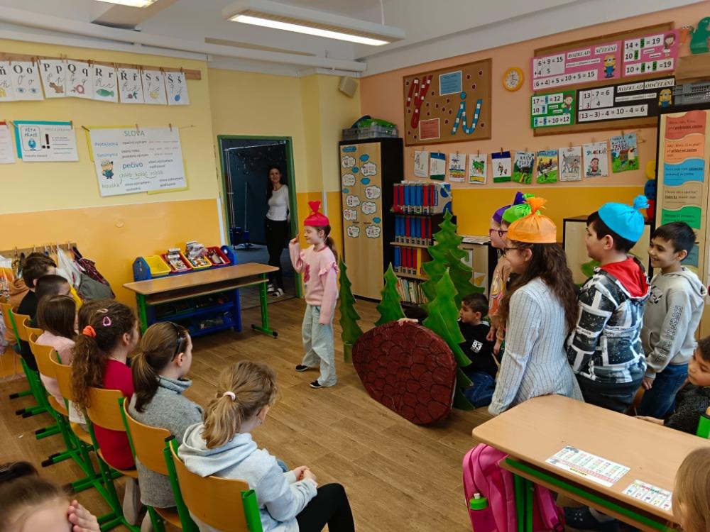 Naší třídě se dostalo pozvání na divadelní představení. Třída II. B spolu s p. učitelkou Michaelou Mokrou a p. asistentkou Martinou Rancovou si pro nás připravila pohádku "Paleček a jeho kamarádi". Žáci použili převleky, kulisy a také hudební nástroje. Hráli s velkým nadšením.