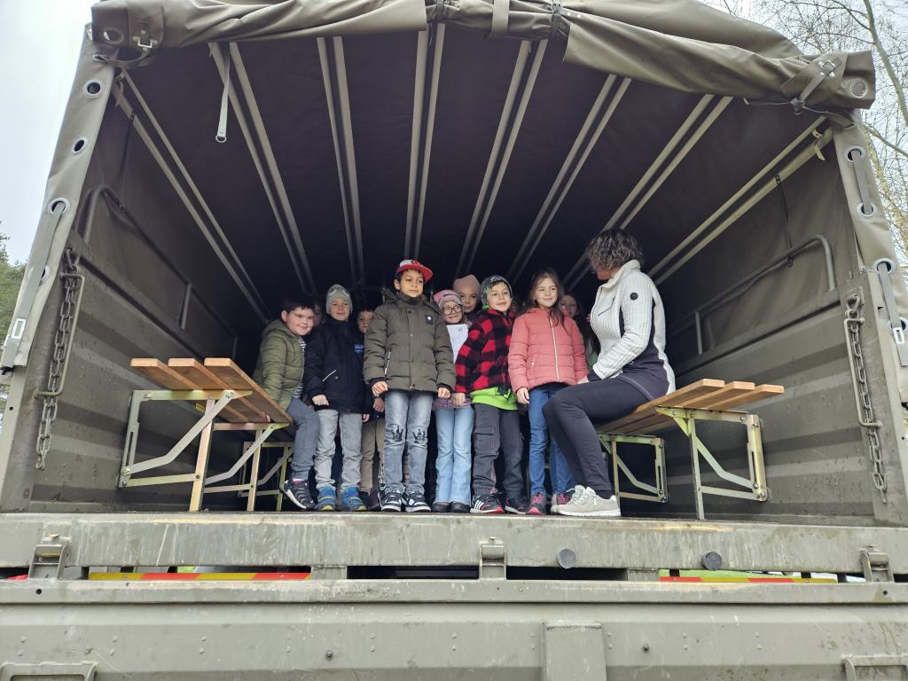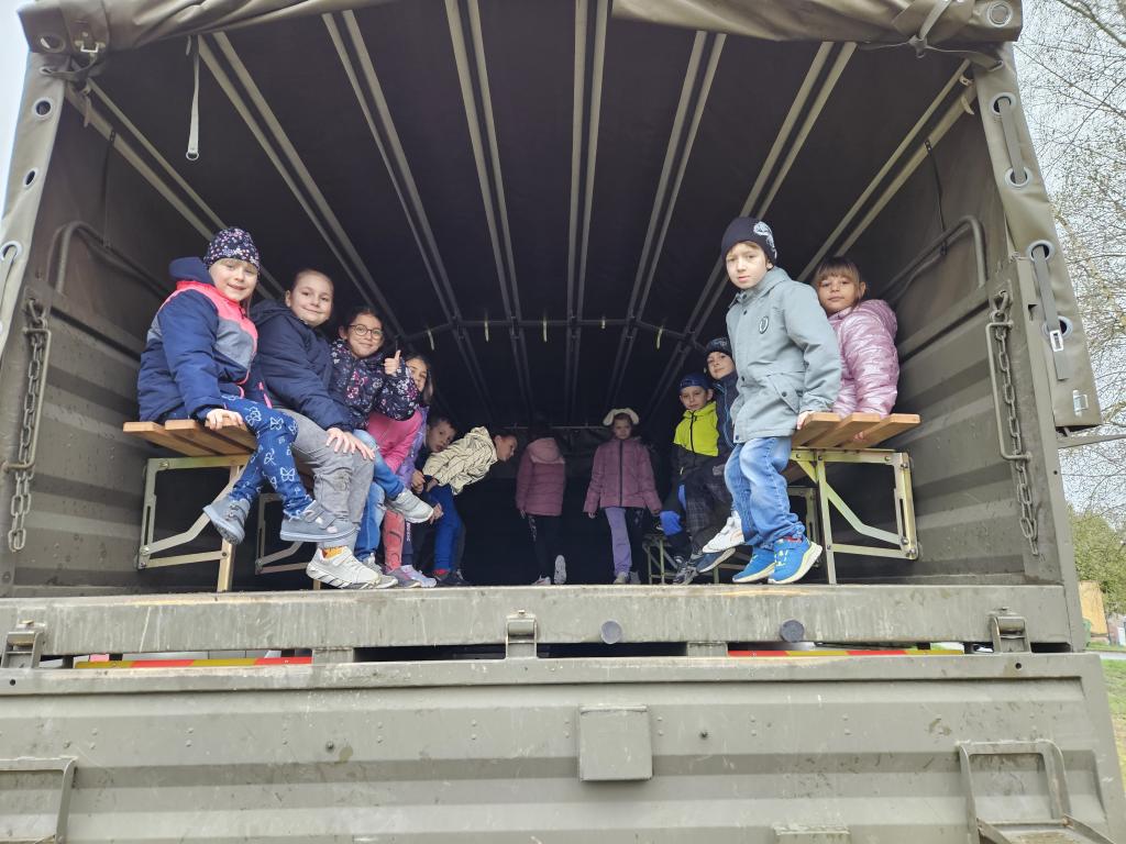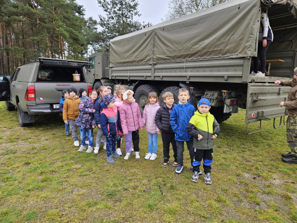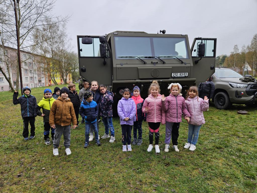 Dne 5. 4. 2024 jsme měli možnost podívat se na vojenské vozy, které byly přistavené na hřišti v blízkosti školy.