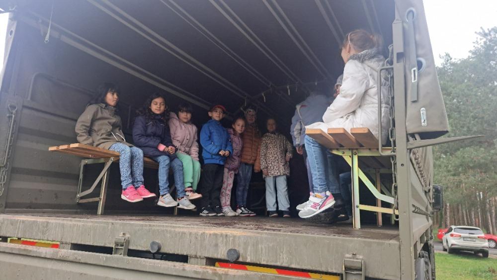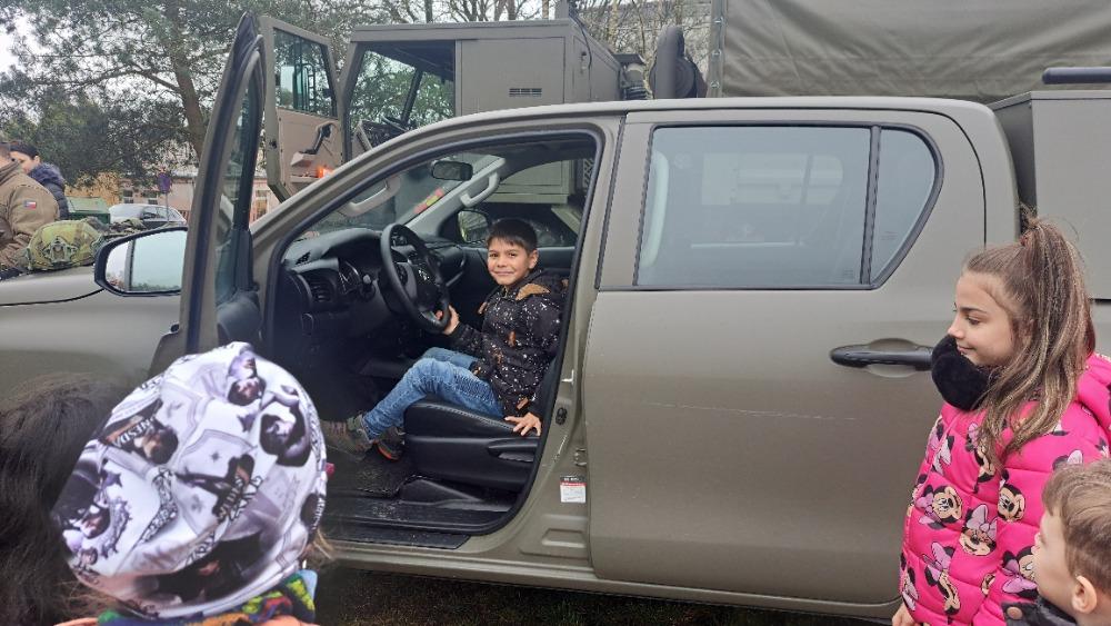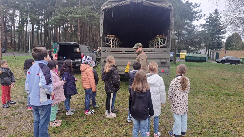 V pátek 5. 4. přijeli na hřiště k naší škole vojáci. Měli jsme možnost prohlédnout si vojenské vozy a samopal. Děti dostaly pracovní list a za jeho vypracování získaly odměnu - pexeso. Akce se nám velmi líbila.