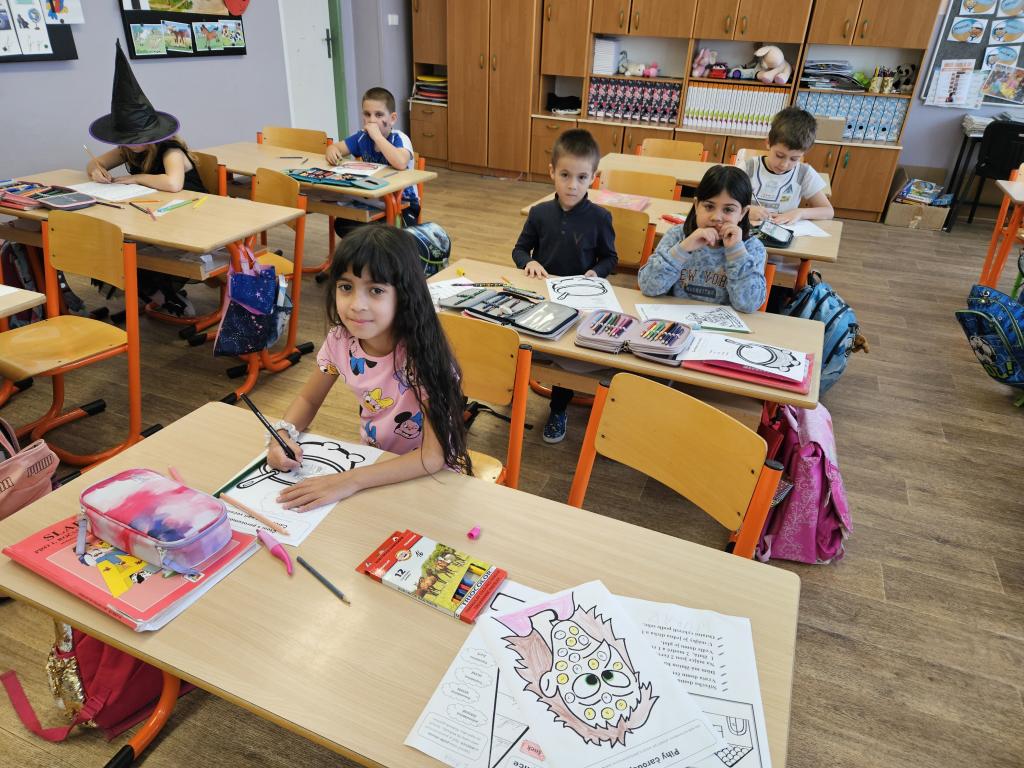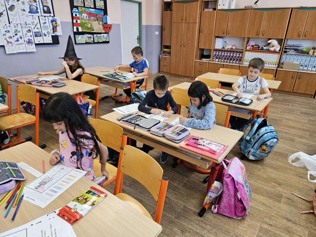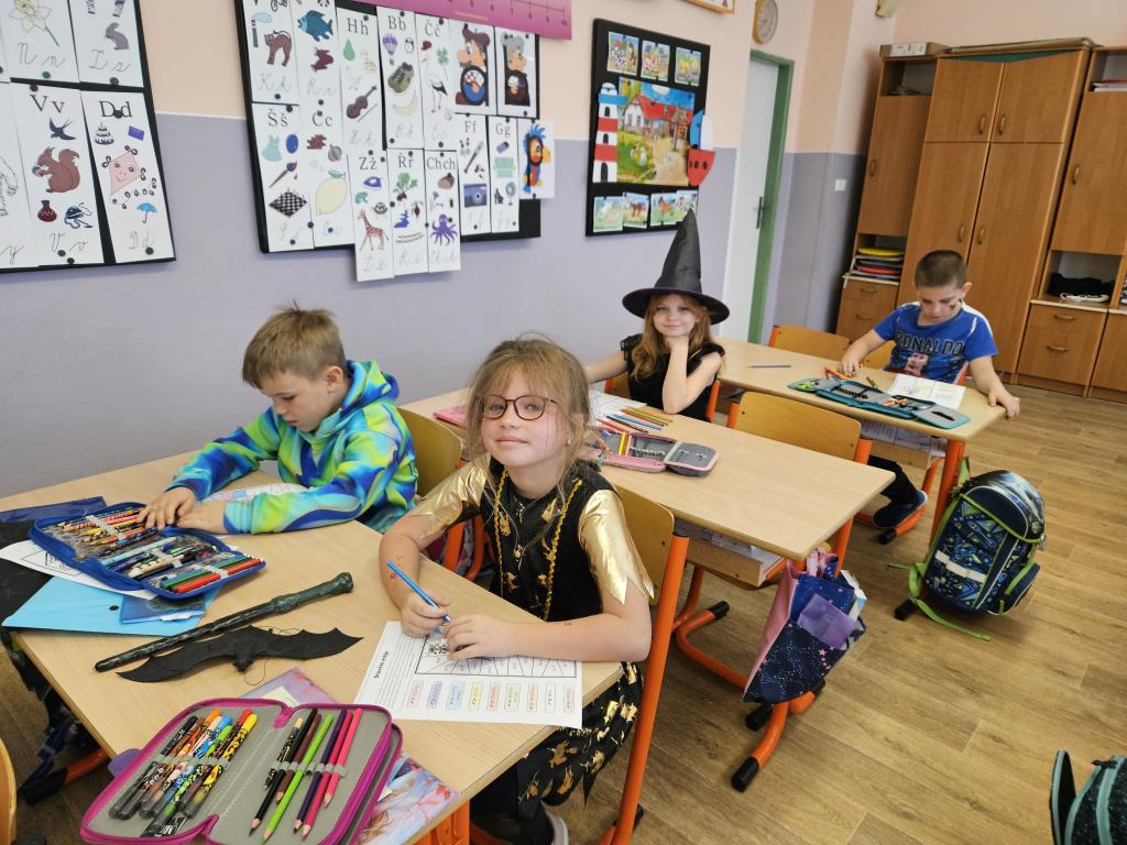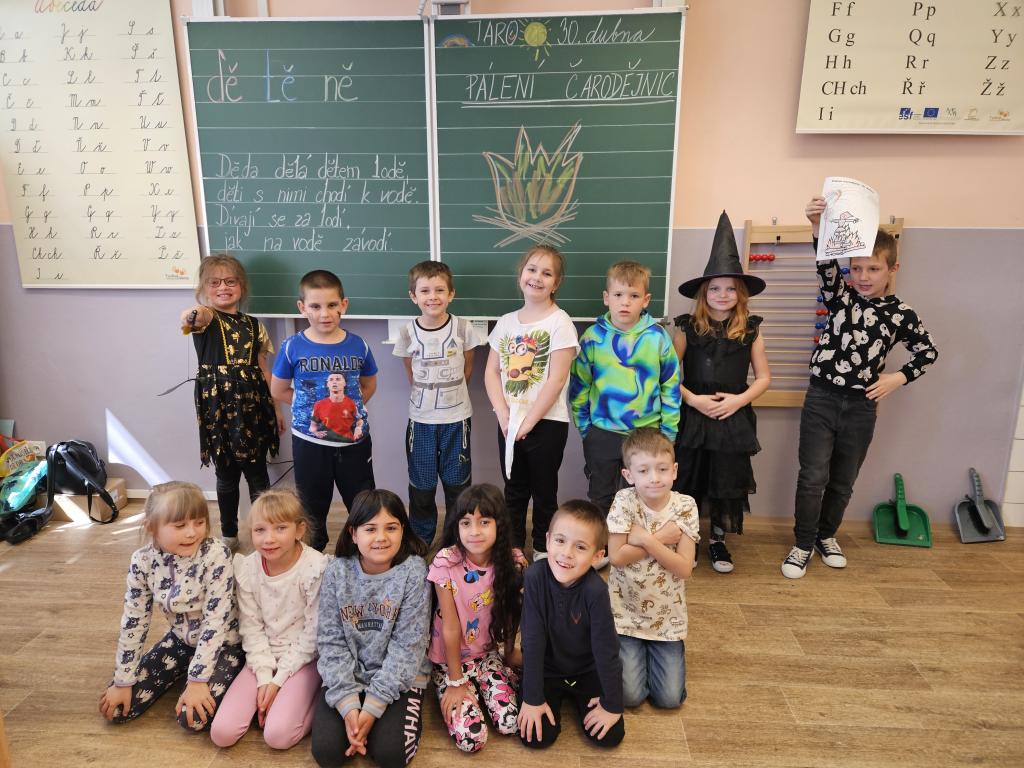 Dne 30. 4. se ve třídě 1. B konalo čarodějnické vyučování. Někteří žáci přišli do školy převlečení do kostýmu čarodějek a čarodějů.