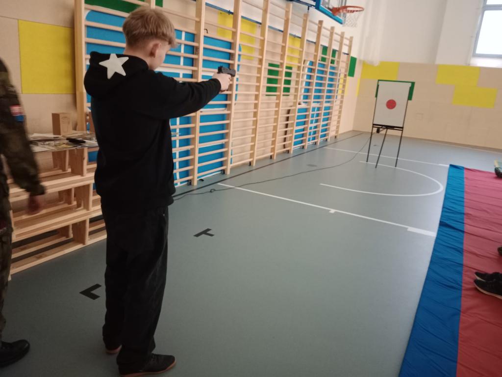 Naše 9. A spolu s částí žáků 8. B si jako první vyzkoušela v tělocvičně naší školy laserovou zbraň. Žáci absolvovali stručný návod a několik základních bezpečnostních pravidel a poté si zkusili vystřelit na připravený terč. Všichni měli možnost si mezi sebou zasoutěžit, kdo bude nejlepším střelcem. V naší třídě byli nejlepší Jakub a Sebastián. Za snahu byli odměněni drobnými cenami.