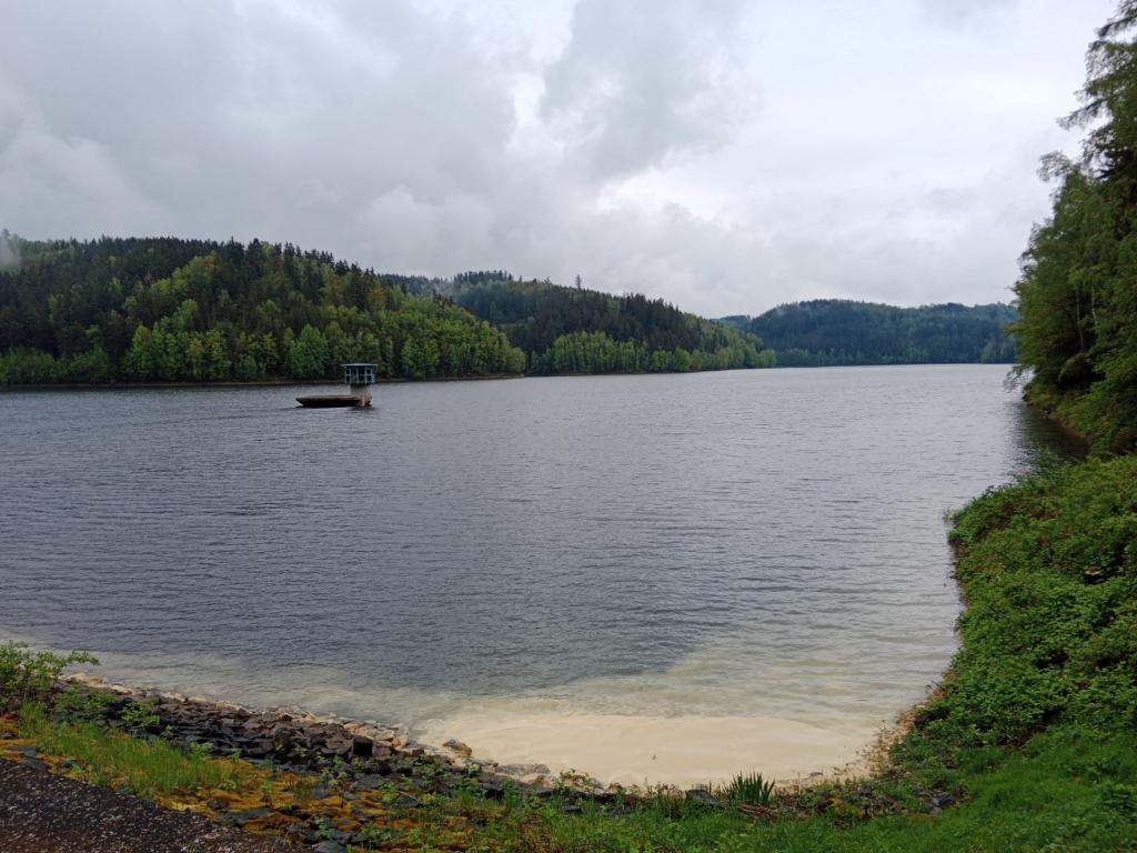 Poté jsme se všichni společně s panem hrázným Martinem Uhlíkem vypravili k vodní nádrži pitné vody. Zde se po základních informacích smělí žáci vypravili spolu s p. učitelem Nýdlem po točitých kovových schodech a žebříku na povrch přehrady. Poté se stejnou cestou vrátili zpět. Byla to fuška a odvážlivcům gratuluji.