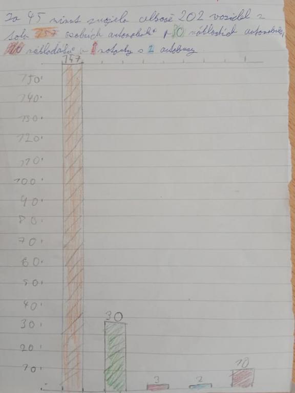 V následujících hodinách budeme společně hodnotit práce žáků a zkusíme se zamyslet nad zjištěnými údaji a prodiskutujeme např. dopad dopravy na životní prostředí města.
