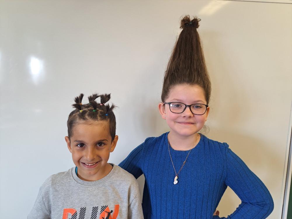 V rámci projektu Hrdá škola se naše třída opět zapojila, tentokrát do Dne šílených účesů. Do školy přišli nejen žáci, ale i učitelé s neobvyklými účesy. Fantazie dětí i rodičů je opravdu veliká, jak můžete zhlédnou v galerii.
