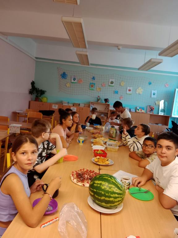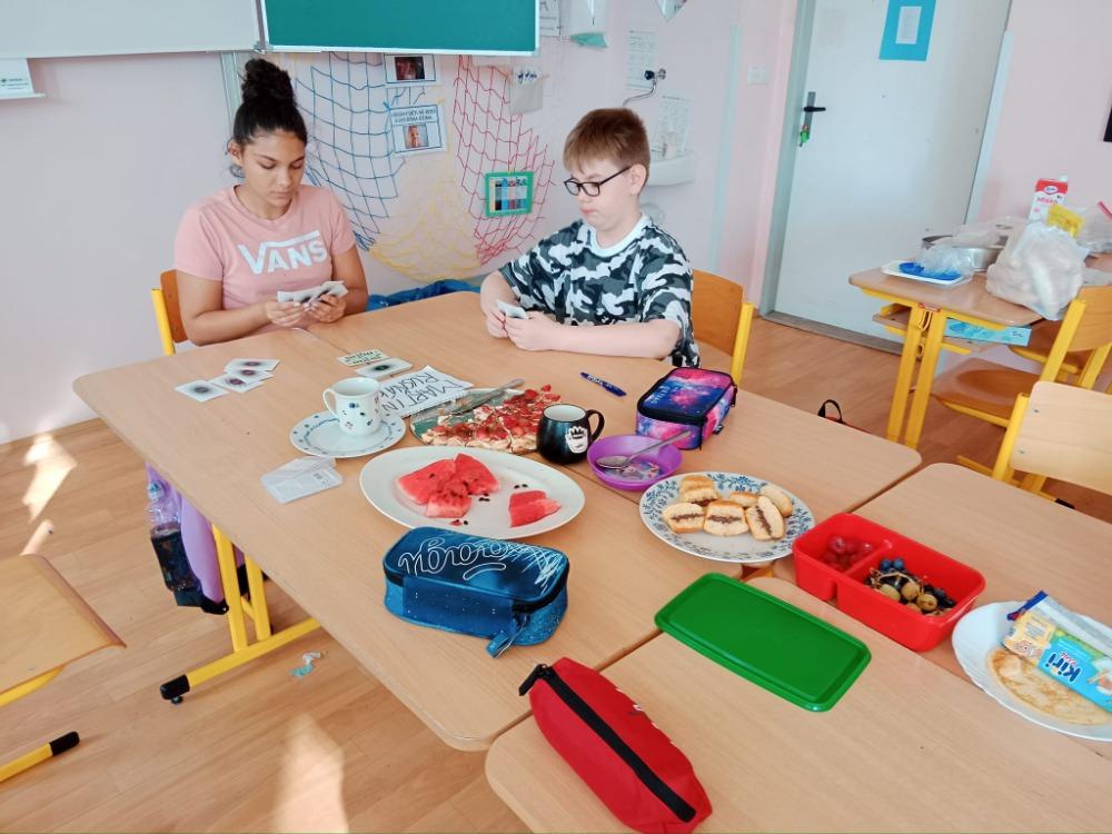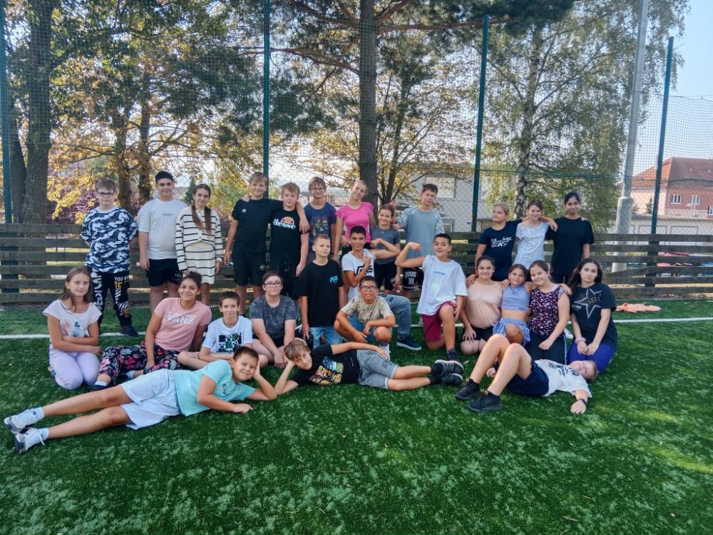 V závěru týdne se žáci 6. B třídy seznámili se svými novými spolužáky, a to se třídou 7. A a staronovými kamarády ze 6. A., se kterými jsme se sešli v tělocvičně a na školním hřišti. Závěr týdne jsme zahájili společnou snídaní a zhodnocením celého týdne.