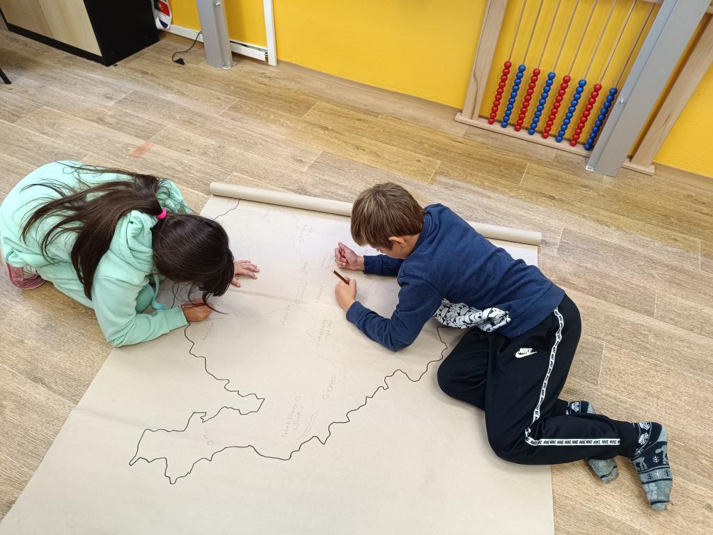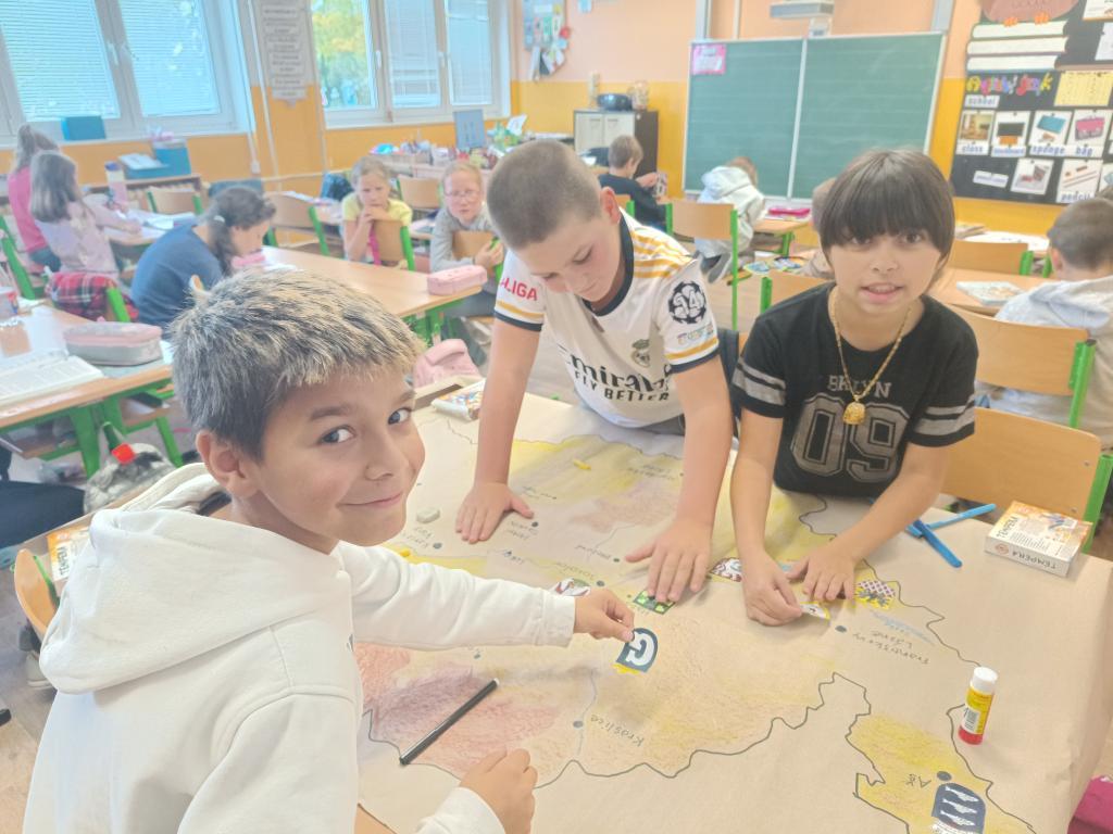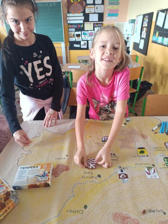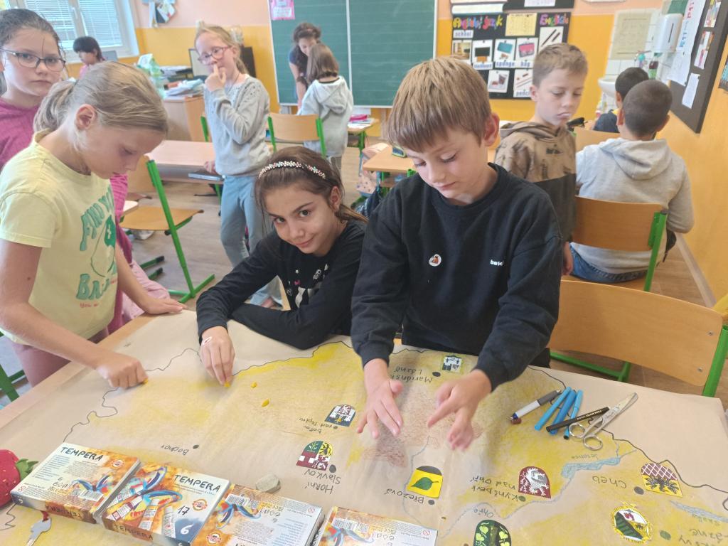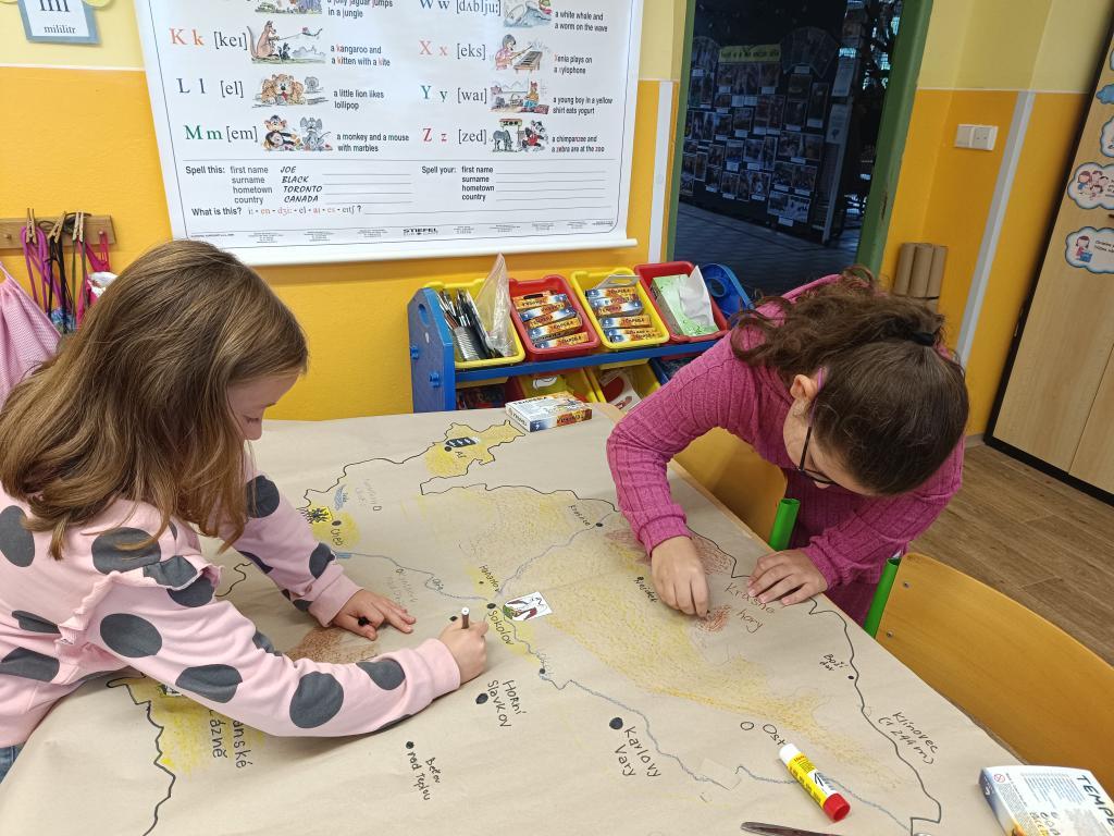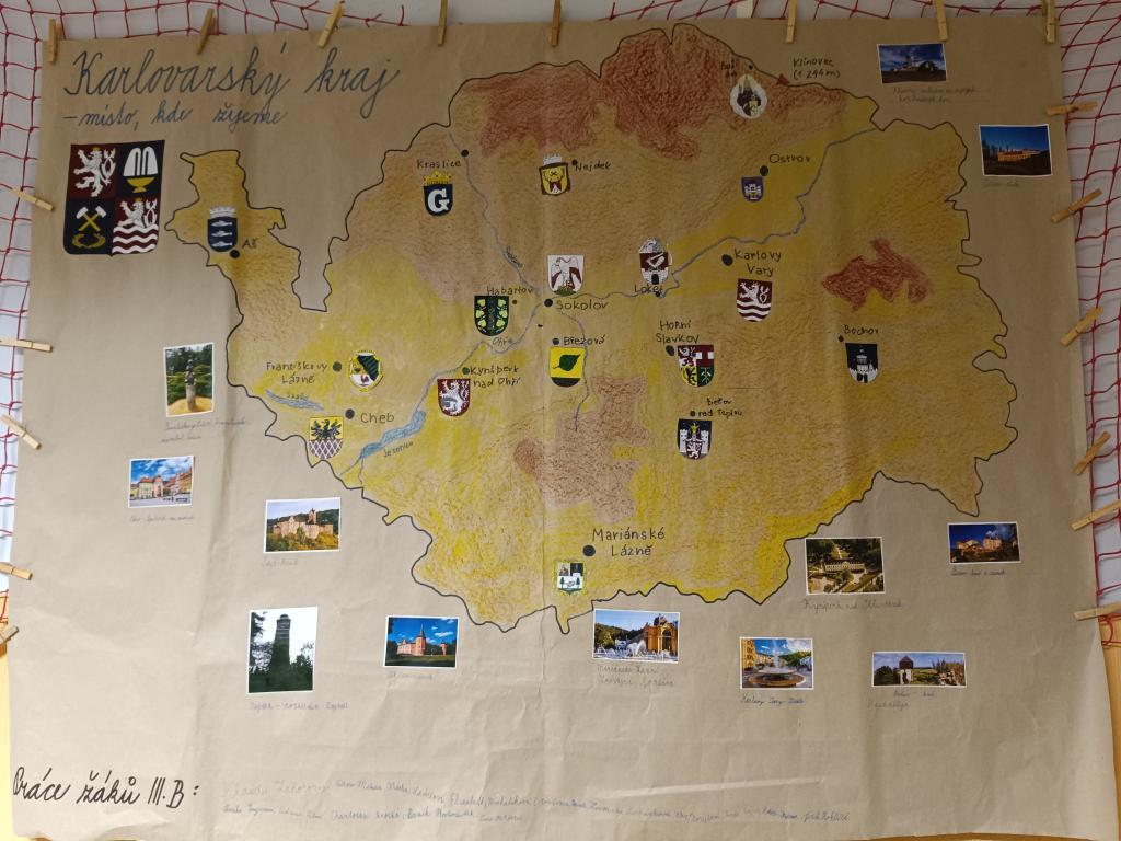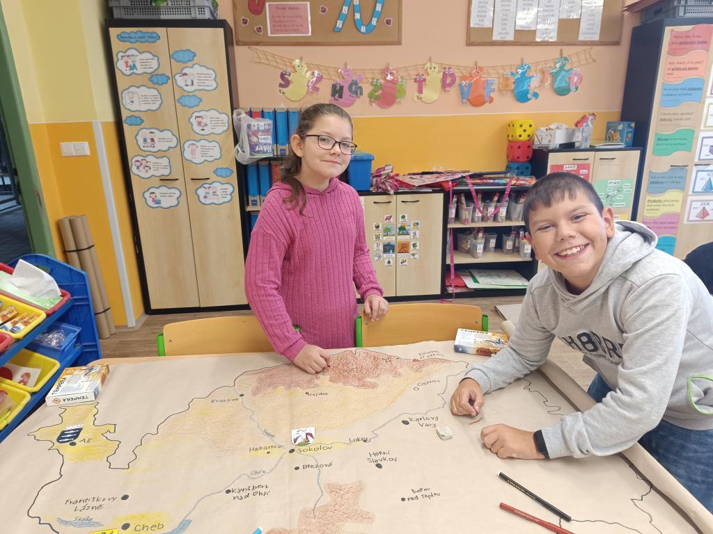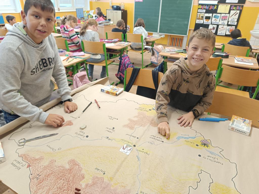 V hodinách prvouky se mimo jiné také učíme o naší zemi a místě, kde žijeme. Habartov už všechny děti znají, a tak jsme se vydali za hranice jejich města. Hledali jsme na mapě české republiky náš kraj, jaké hory a řeky v našem kraji můžeme najít, a také města, která známe a už jsme je navštívili. Potom jsme společnými silami vytvořili projekt - mapu s významnými městy a jejich znaky, horami a řekami v našem okolí. Práce na projektu děti velmi bavila, a proto se dílo podařilo.
