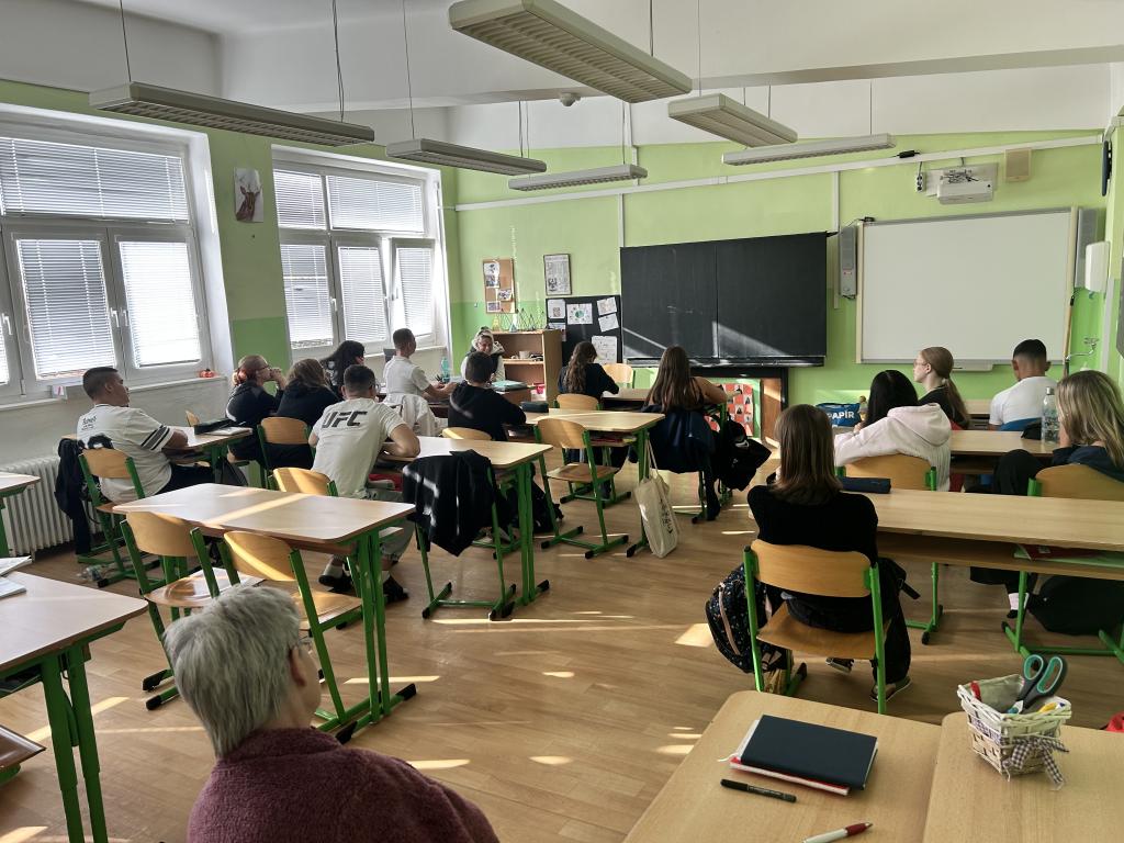 Rozhodování by jim měly usnadnit získané informace z burzy škol v Chebu a z besedy se zdravotní sestřičkou p. Kunešovou. Akcí “po stopách zločinu” mohli poznat prostředí a v praxi si vyzkoušet náplň studia na střední škole Trivis v Karlových Varech. Velký přínos měla dnešní beseda o zkušenostech z přijímacího řízení a prvních dvou měsících na střední škole/učňáku s Terezkou, Týnkou, Kikčou, Nikčou a Sebou, která navíc byla zprostředkována těmi “nejpovolanějšími” - našimi loňskými deváťáky!