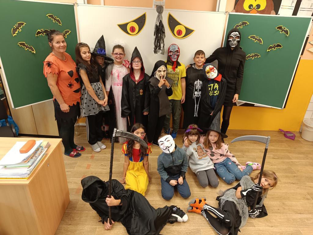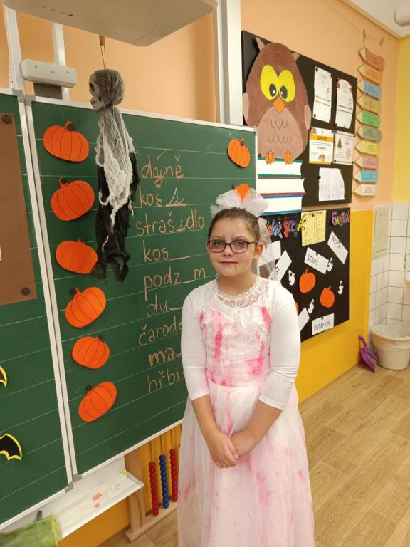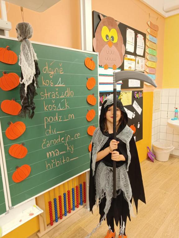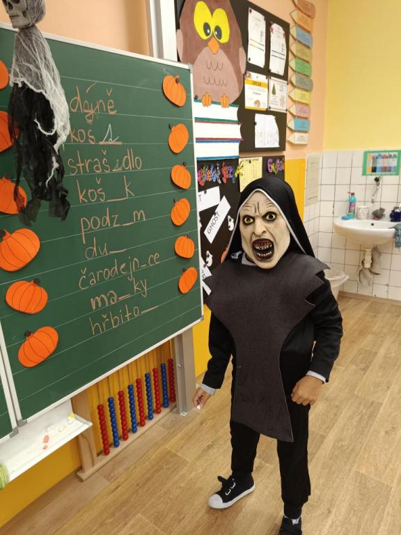 Haloween je každoroční podzimní událostí, na kterou se děti opravdu těší. V pátek 25.října u nás ve třídě proběhla halloweenská výuka. Děti přišly v různých kostýmech, naše třída byla plná strašidelných krvavých postav, čarodějnic, smrtek a dalších hrozivých bytostí. Ve všech předmětech se děti setkávaly s halloweenskými tématy, ať už to byla nová slovíčka v angličtině, počítání s dýněmi nebo čtení s porozuměním textu v českém jazyce. Novinkou bylo kouzlení s fazolemi, které jsme proměnili v tančící duchy. Na závěr čekala na všechna strašidla sladká odměna.