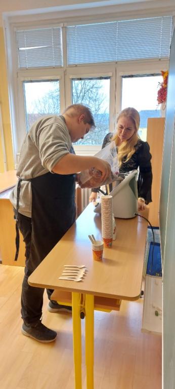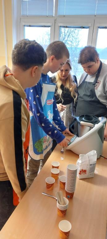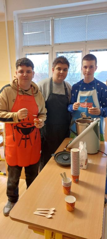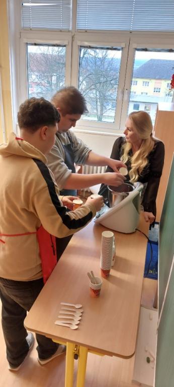 Protože se naše škola zapojila do projektu „Hrdá škola“, stali se z nás 18. listopadu, v den, který má poděkovat kuchařkám za jejich velice náročnou práci, alespoň na chvilku kuchaři. Vybrali jsme si z nabídek studené kuchyně zmrzlinu. Paní učitelka koupila jahody, moučkový cukr a kelímky se lžičkou. S nadšením jsme se dali do výroby jahodové pochoutky. O chutnou zmrzlinu jsme se podělili i s učiteli. Pro naše kuchařky ze školní jídelny jsme vyrobili pěkné poděkování a zástupci naší třídy je se slovy díků předali. Děkujeme. Vážíme si vaší práce. Rádi děláme radost.