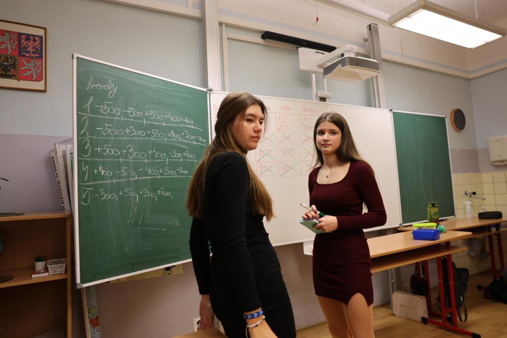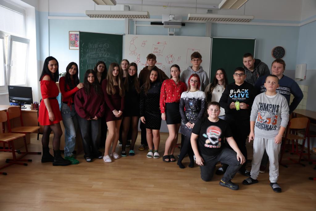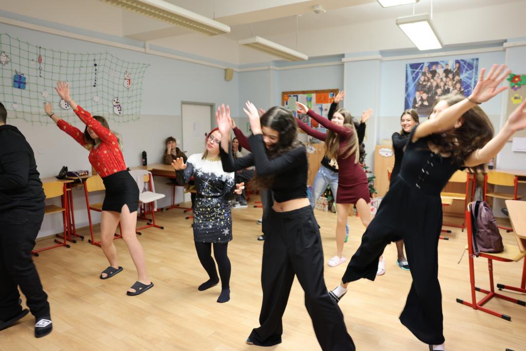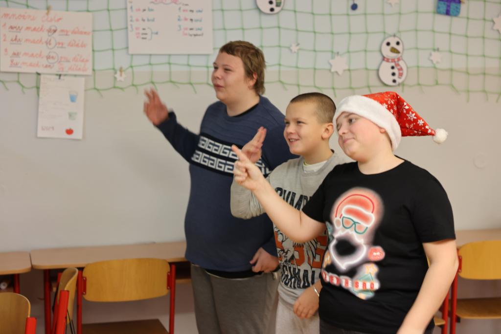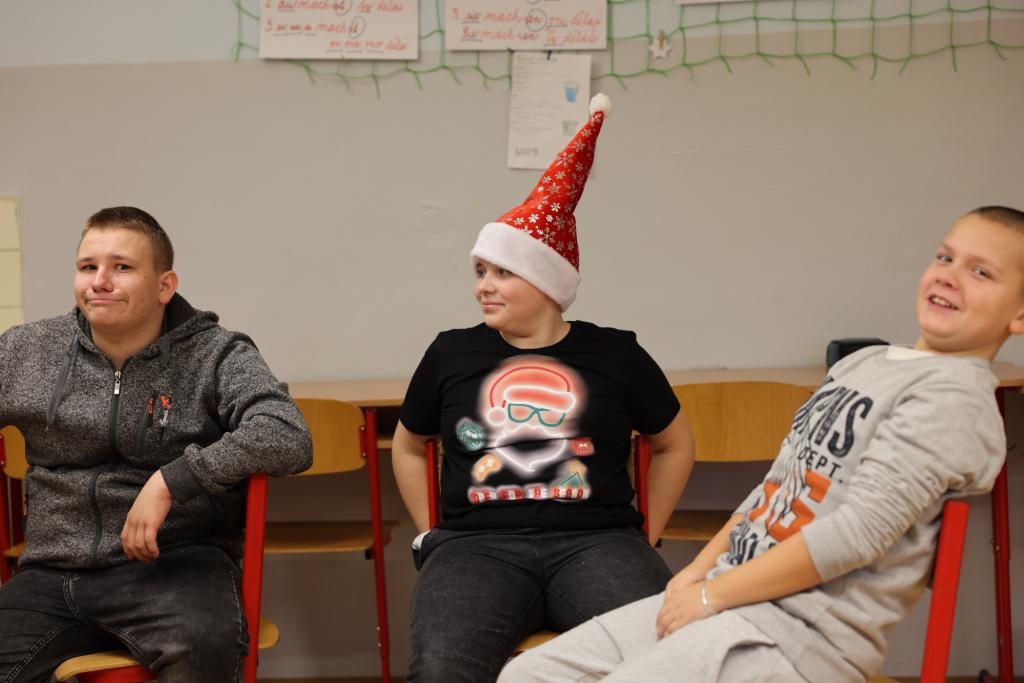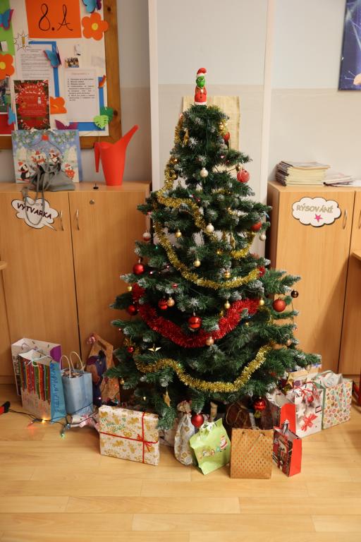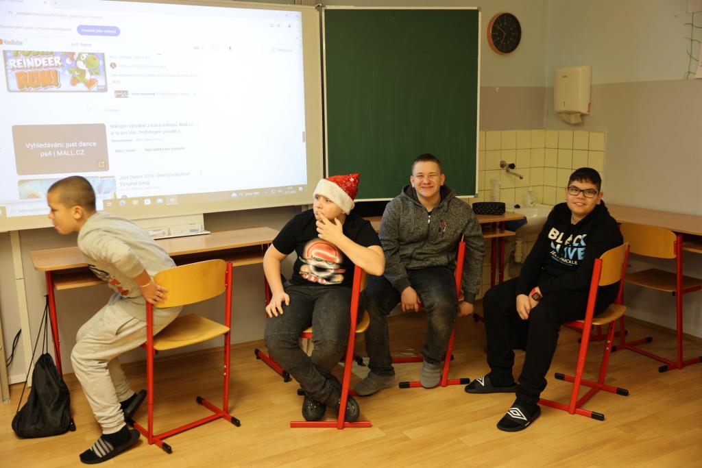 Vinou probíhající karantény jsme byli letos ochuzeni o společné zpívání a tancování celého druhého stupně na hlavní chodbě. Navzdory tomu jsme se však nenudili, díky Elišce, Anetce a Kátě měla naše třída o zábavu postaráno. První hodina byla věnována tanci, kdy se všichni, kdo měli chuť, snažili napodobit taneční kreace, které se před nimi objevovaly na interaktivní tabuli. Po protažení těl pak přišly ke slovu mozečky. V následujících dvou hodinách jsme podle písniček poznávali pohádky a v týmech zdolávali nástrahy vánoční mutace her aktivity a riskuj. Poslední hodina pak náležela obligátnímu dárečkování. Pod stromkem se sešlo balíčků opravdu požehnaně, a tak nikdo neodcházel s prázdnou, Chtěl bych výše zmíněným děvčatům moc poděkovat za to, že věnovaly svůj volný čas přípravě programu, který většinu přítomných dokázal zabavit na několik hodin. Před odchodem ze třídy vzniklo ještě pár fotografií na památku a zaznělo bezpočet přání krásných svátků a pak již nic nebránilo tomu, abychom na více jak dva týdny dali škole sbohem a zamířili do svých příbytků, kde prožijeme krásný vánoční čas a do školy se vrátíme až zase v roce 2025.