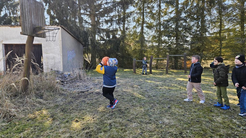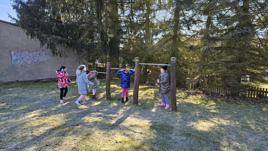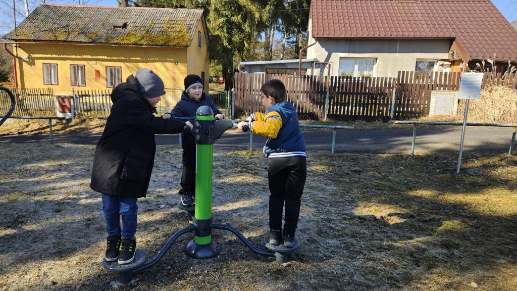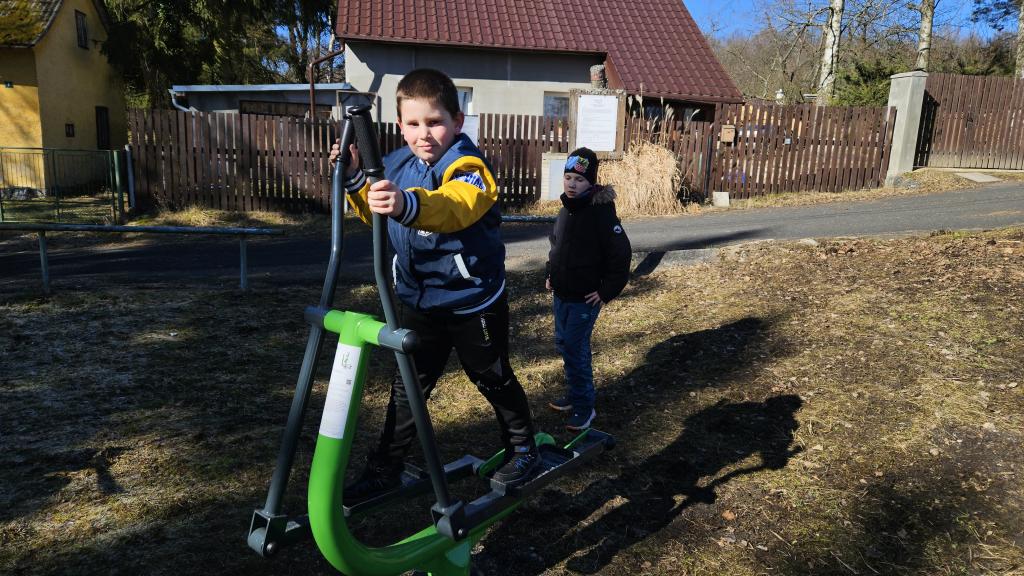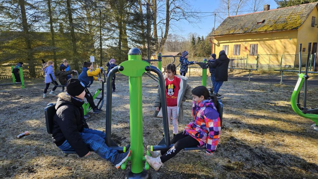 První sluneční paprsky nám umožnily vyzkoušet nové fitness hřiště pro děti. Je zde mnoho možností k využití. Děti si mohly zahrát basketbal, posilovat, házet míčem, apod. Strávená hodina na vzduchu se dětem moc líbila.