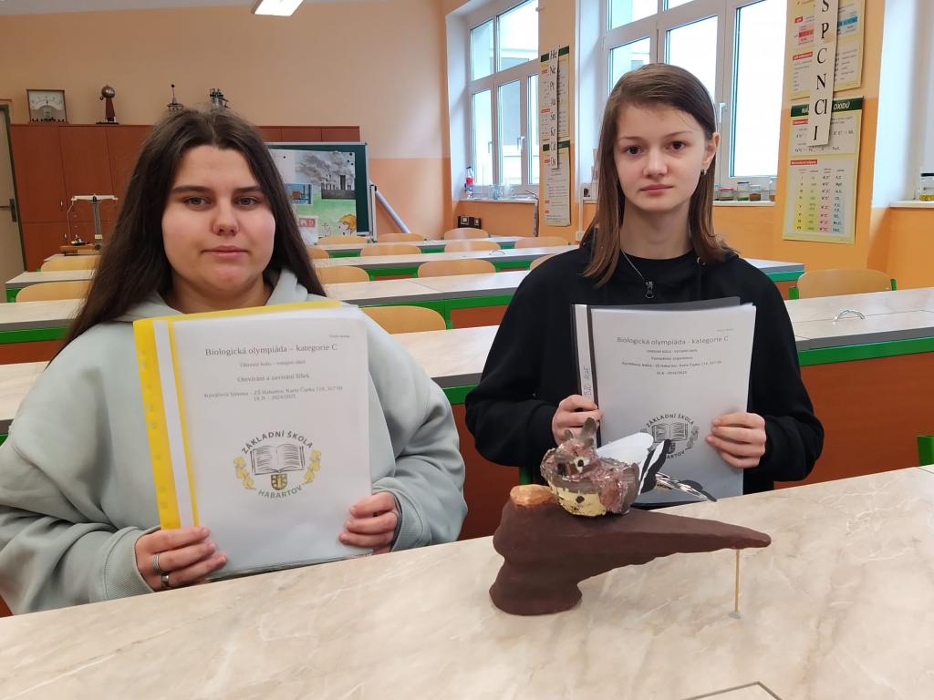 Dne 17. 3. 2025 se děvčata Simona Kováčová (9. B) a Adéla Rychlíková (9. A) zúčastnila okresního kola biologické olympiády, které se konalo na Gymnáziu Sokolov.