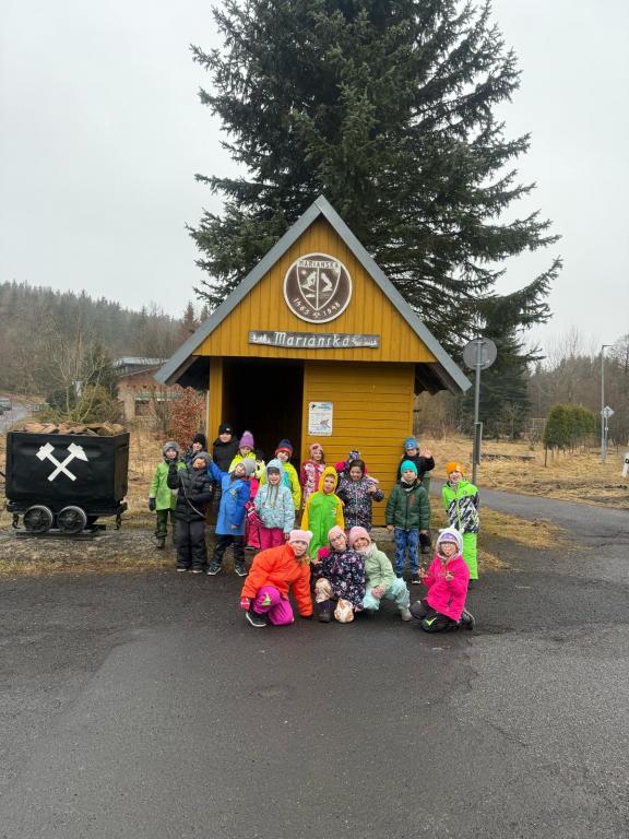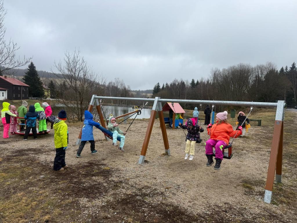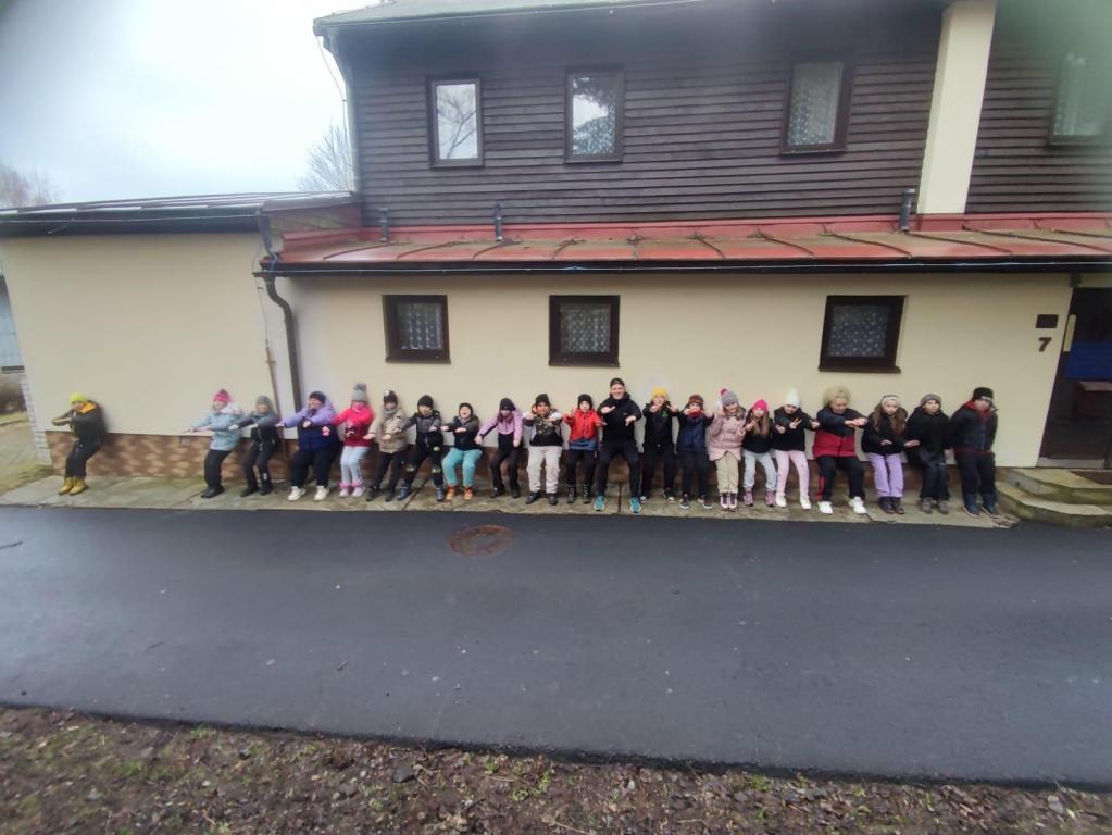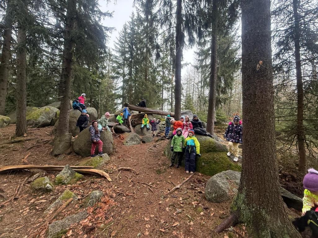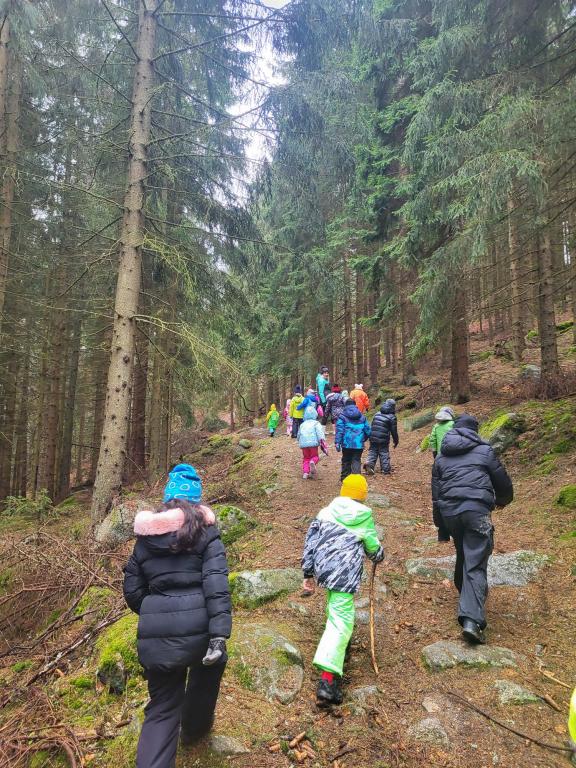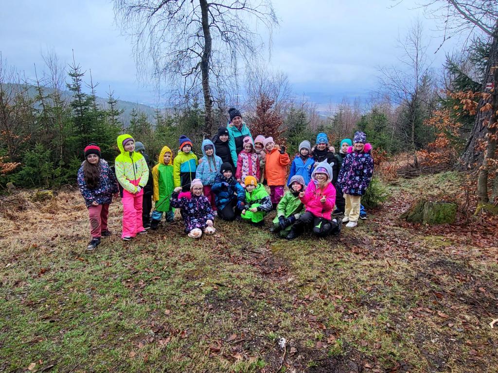 Po obědě přišla polední pauza a s ní i dobrá zpráva – déšť ustal! Toho jsme hned využili a vydali se ven. Prvňáčci si užili dobrodružnou túru, během níž objevili Vlčí skály, místní kapličku a více než 200 let starou lípu. Starší žáci se mezitím vydali po přírodovědné stezce. Odpoledne jsme se pustili do soutěžní hry, která spojovala matematiku a luštění tajenky. Po úspěšném vyluštění jsme si ještě zaposilovali a zahráli vybíjenou.