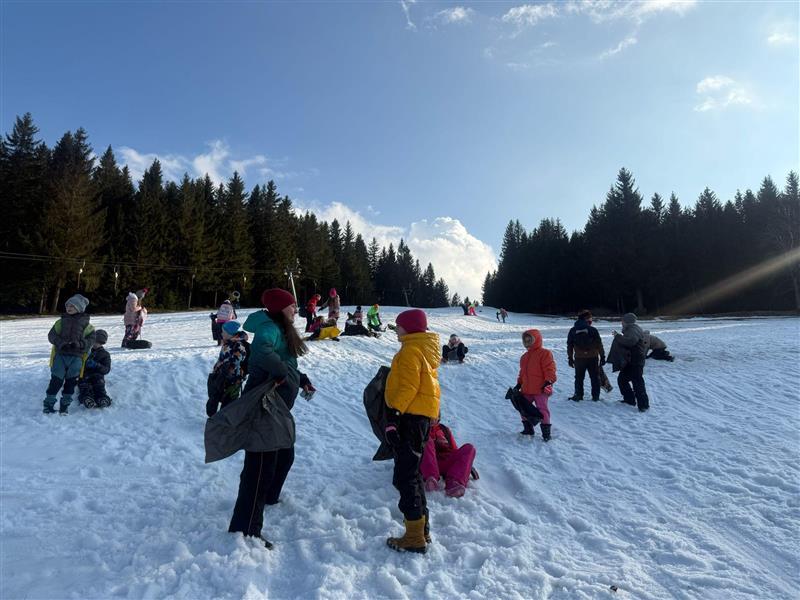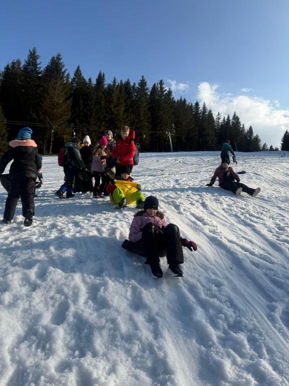 Po odpočinku jsme vyrazili na stopovačku. Plnili jsme různé úkoly a stopa nás dovedla až na místní sjezdovku, kde jsme objevili zbytky sněhu. A co jiného s ním udělat než se na igelitce pořádně sklouznout? O zábavu a smích rozhodně nebyla nouze!