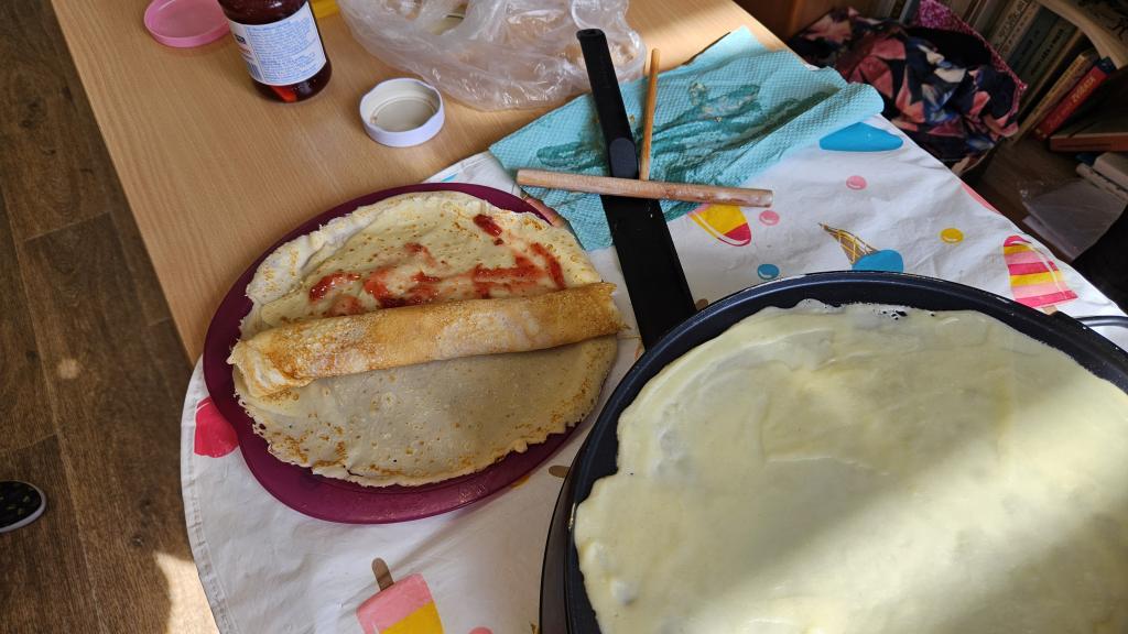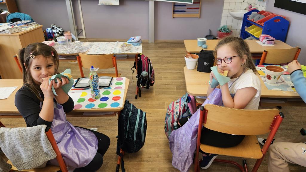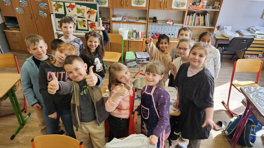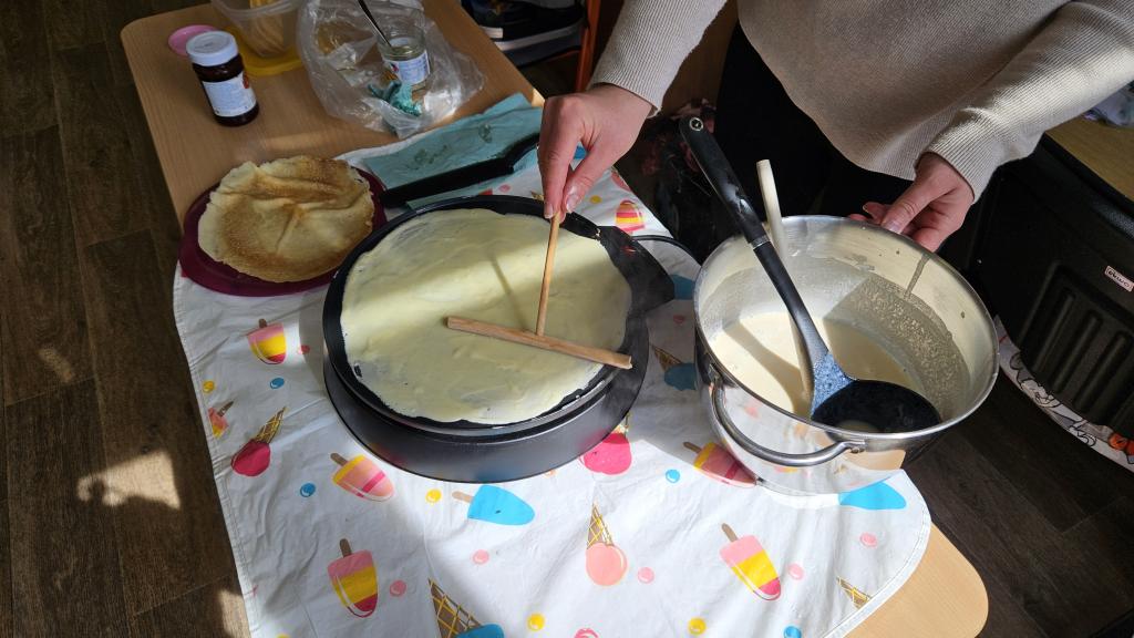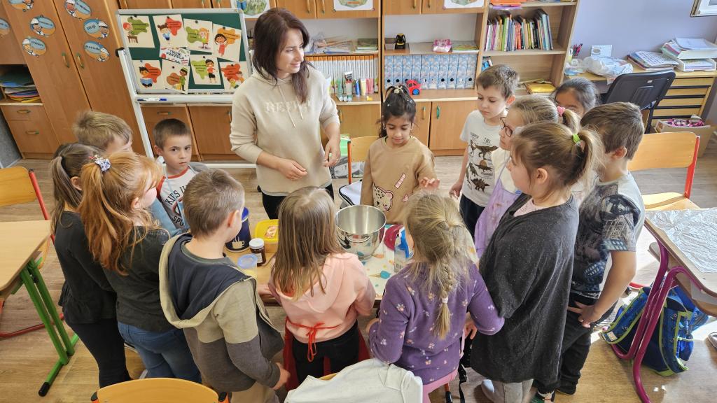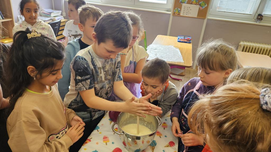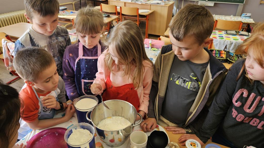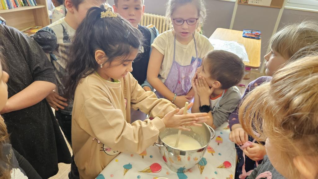 Během dnešního vyučování si děti vyzkoušely postup přípravy těsta na palačinky. Odměnou jim byla vlastní ochutnávka výborných palačinek s marmeládou.