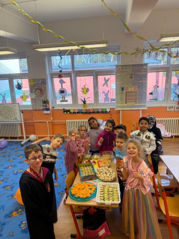 Ve třídě 1. A probíhají pravidelně ochutnávkové dny. Dnes jsme společně ve třídě 1. A ochutnávali různé druhy pomazánek. Zároveň jsme si celý den v rámci Masopustu vylepšili karnevalem, výzdobou a různými maskami.
