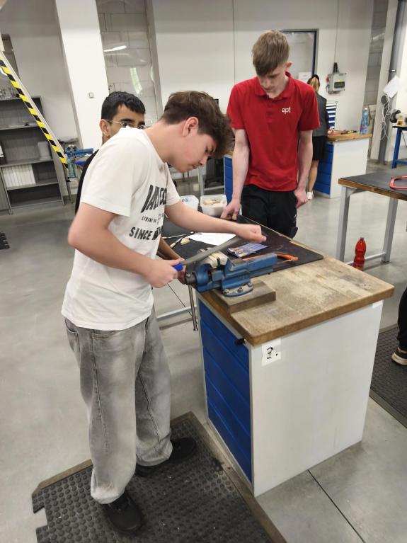30. dubna se žáci 8. B vydali do firmy EPT, kde dokončovali svůj dřevěný výrobek – pejska, na kterém pracovali v rámci pracovní výchovy. Na místě je opět přivítala skvělá atmosféra a ochotní studenti střední školy, kteří jim během práce pomáhali a předávali své zkušenosti. Výrobky se velmi zdařily a každý si odnesl nejen pěkný výsledek své práce, ale i nové dovednosti.