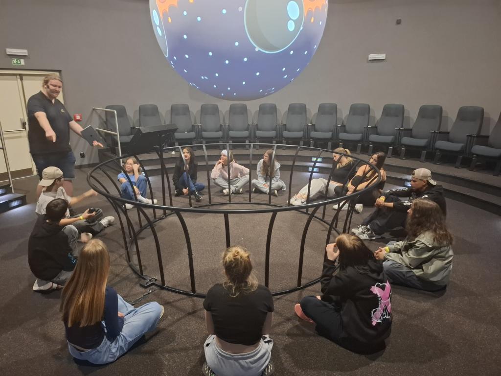 Nejprve jsme navštívili komentovanou projekci oblohy ve 2D, kde se žáci mohli dozvědět zajímavosti o noční obloze, souhvězdích a vesmírných tělesech. Projekce byla přizpůsobena věku dětí a provázena odborným výkladem.