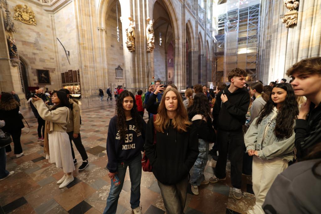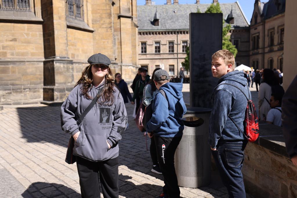 … a 8. A jejího volání vyslyšela. I osmáci se totiž v pátek 9. května dočkali svého prvního výjezdu pořádaného v rámci projektu podporujícího školy se sociálně znevýhodněnými žáky. To v praxi znamená, že dopravu i vstupy má celá třída zdarma, a to se vskutku vyplatí i za cenu času stráveného vyplňováním několika dokumentů. Počasí nám velmi přálo, a tak návštěvu Pražského hradu, Karlova mostu, Staroměstského orloje a právě výše uvedeného Václavského náměstí nám narušovaly pouze davy turistů ze všech koutů světa. My, lidé z malého městečka střediskového, jsme byli poněkud nesvoji, když se nám před očima míhaly ty stovky a tisíce postav nejrůznějších barev pleti a hovořící desítkami známých i méně známých jazyků. Přesto jsme si návštěvu našeho hlavního města bezezbytku užili, vždyť někteří viděli ona památná místa našich dějin na vlastní oči poprvé v životě. Osmáky můžu pochválit za to, že prohlídku se mnou absolvovali bez remcání, dokonce bez poznámek a pokřivených obličejů strávili i několik nemnoho mých dějepisných poznámek a exkurzů, jimiž jsem jim chtěl trošku přiblížit to, na co se vlastně dívají. A tak jim ani v nejmenším nemůžu mít vůbec za zlé, že u nich nakonec z celého výletu na celé čáře přeci jen zvítězil onen „Václavák“ se všemi těmi nákupními lákadly. Asi devadesátiminutový rozchod na někdejším Koňském trhu všichni na plno využili k jejich oblíbené činnosti, totiž „shopování“. Během pár minut se jim tak plnila nejrůznějšími dobrotami nejen bříška, ale i tašky a batůžky. Někteří nevěděli, jestli dát přednost pizze, kuřeti z KFC či klasickému „mekáči“, o kolik to v Habartově mají jednodušší, zde vždy vítězí kebab. Dívky se také s obrovským zájmem vrhly do obchodů s oblečením a kosmetikou a jejich kapesné začalo z peněženek mizet rychlostí blesku. Na místo srazu však naštěstí dorazili všichni ve zdraví, byť někteří s asi dvou minutovým zpožděním, což lze vzhledem k tomu lidskému mumraji odpustit, a tak jsme se mohli od sochy sv. Václava přesunout k Hlavnímu nádraží, kde nás znavené, ale troufnu si napsat šťastné po pár minutách nabral náš autobus, který nás během dvou hodin dopravil domů. Chci věřit tomu, že i žáci vnímají tento den, stejně jako já, totiž coby velmi vydařený.