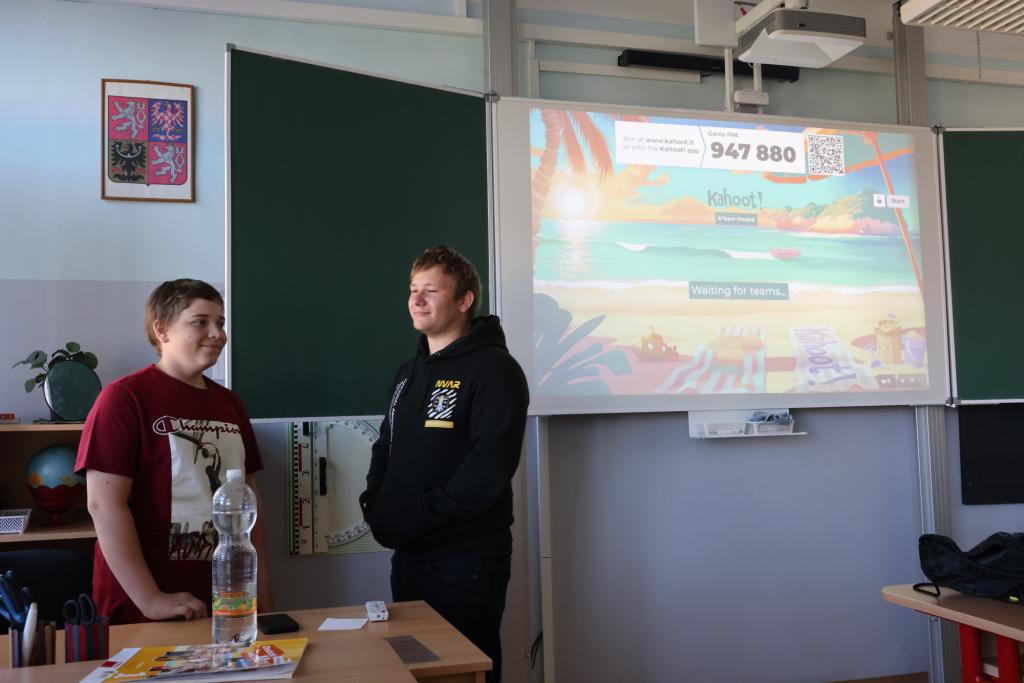 Takřka všechny povinnosti máme již splněny, a tak jsme vyšetřili na konci školního roku několik dnů, které můžeme věnovat také zábavě. Před časem jsem přišel s nápadem, že bychom mohli jeden den věnovat jídlu. Tento nápad dopadl na úrodnou půdu a setkal se u osmáků s všeobecným nadšením, a tak ve středu 25. června se několik lavic ve třídě proměnilo v nevšední tabuli, když je zaplnilo množství až na nejmenovanou výjimku žáky vlastnoručně vyrobených pochutin. Každý svůj pokrm posléze představil a popsal a pak už se mohla naplno rozjet opulentní hostina. Pizza šneci, jednohubky, domácí sušenky, buchty, bábovka, to je jen neúplný výčet toho, co bylo pro chuťové pohárky k mání. Nebylo to však pouze o tom, že bychom celé dopoledne pouze konzumovali přinesené dobroty, ale připravili jsme si i několik hravých a soutěžních aktivit, v nichž se proti sobě utkal dívčí a chlapecký tým. Lukáš a Honza přichystali v Kahootu kvíz týkající se různých pohledů na jídlo, pak nás čekala poznávačka surovin podle chuti, kterou měly na starost Eliška s Anetkou, dále pak vytvořila opět s tématem jídla Káťa variaci hry Activity a já na závěr vytvořil poznávačku a zvukové ukázky písní, v nichž se v textu vyskytovalo nějaké jídlo. V celém herním klání byly o něco úspěšnější dívky, ale to není to nejpodstatnější. Skvělé bylo to, že jsme prožili bezva dopoledne a k tomu se i dobře nadlábli. Všichni se do her zapojili, nikdo neohrnoval nos, a tak nám další těsně předprázdninový den ve škole příjemně utekl.
