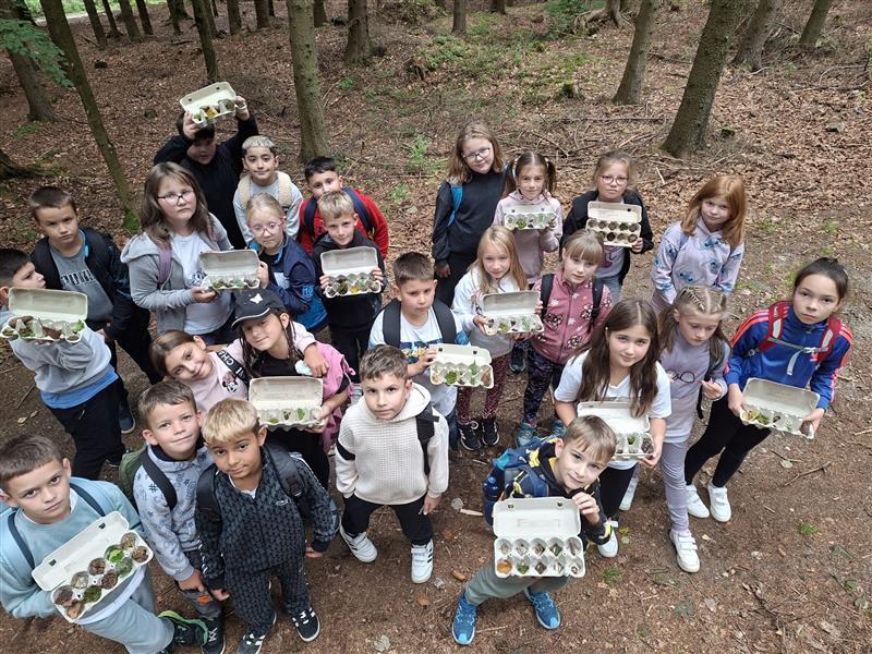 Ani tím však program nekončil. Po odpolední svačině jsme vyrazili do lesa, kde čekala další zajímavá aktivita. Ve dvojicích měli žáci za úkol hledat různé přírodniny – rostliny, mechy či šišky. Úkol splnili s velkým nadšením a po jeho splnění si zasloužili sladkou odměnu.