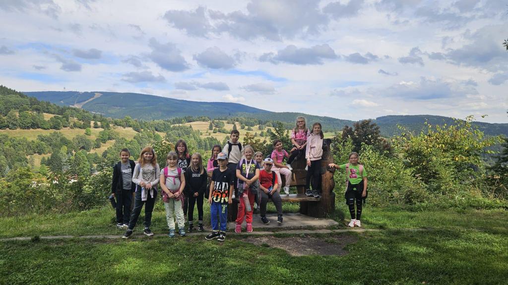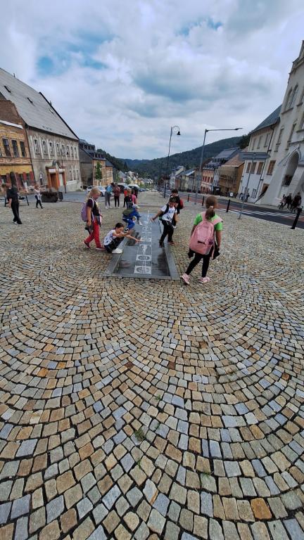Odpoledne jsme vyrazili na túru do Jáchymova. Cesta vedla přes Medvědí stezku a kolem zříceniny hradu Freudenstein. V Jáchymově jsme si prohlédli město, navštívili informační centrum a děti si mohly nakoupit drobnosti v obchodech. Zastavili jsme se také v místní kavárně na tradiční lázeňskou oplatku a osvěžující zmrzlinu.