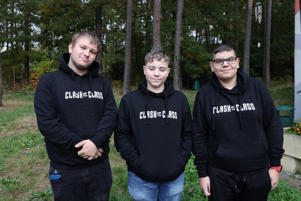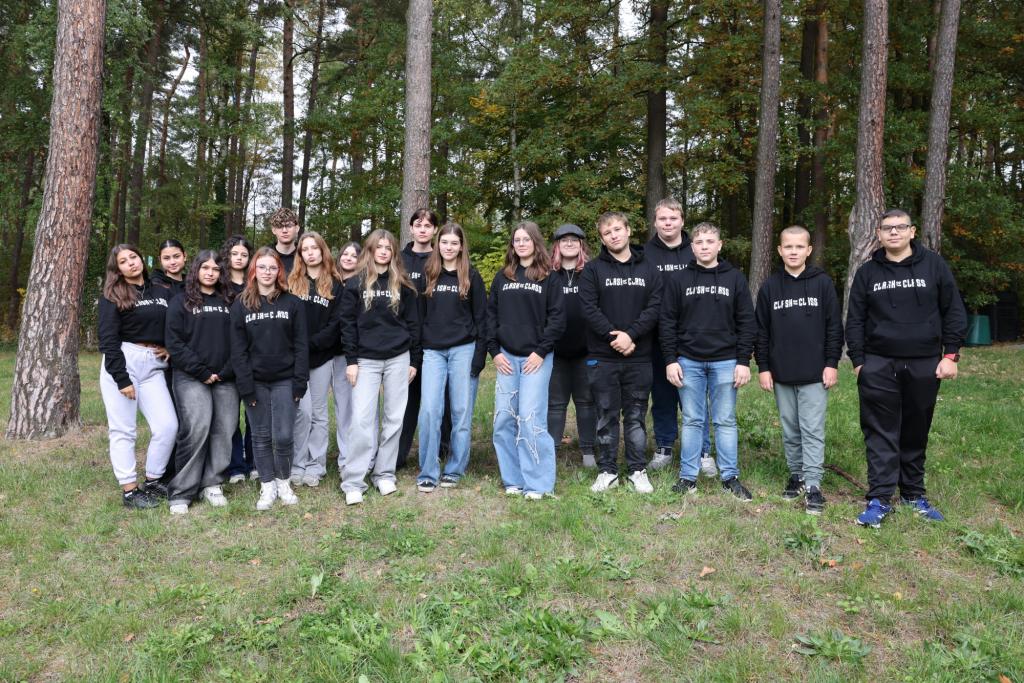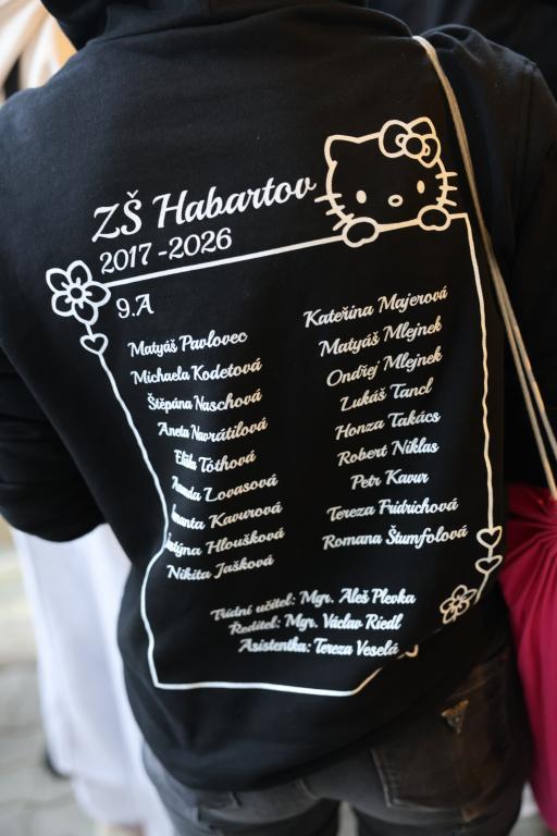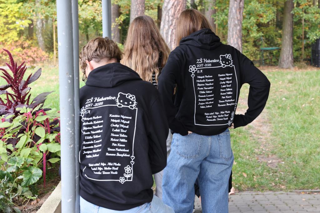 Oním krůčkem se stal výběr a objednání absolventských mikin. Z tohoto kroku jsem měl dle svých minulých letitých zkušeností poněkud obavy, ale tentokrát se vše odehrálo až nadmíru skvěle. Celá třída se po chvilce shodla na barvě i designu oboustranného potisku. Onen anglický nápis Clash of The Class v překladu značí „třídní souboj“, což do určité míry odráží skutečnost, že v naší třídě se vždycky trošičku bojovalo a vzájemné vztahy měly k ideálu poněkud daleko. Nicméně první dva měsíce devítky mne naplňují mírným optimismem, neboť jsem prozatím nebyl nucen řešit žádnou zásadní kauzu, a tak se možná blýská na lepší časy a moji adolescenti si možná pozvolna uvědomují, že jim odtikávají poslední měsíce bezstarostného dětství, tak proč si je zbůhdarma kazit nějakými žabomyšími bojůvkami. Každopádně mikiny jsou na světě a děcka je určitě během následujících měsíců v rámci školních akcí i jinak unosí. Závěrem musím napsat, že já si mikinu tentokrát bohužel neopatřil, neboť velikostně a vlastně ani provedením mi nevyhovovala. Nicméně, abych, jak pronesla Káťa: “Nezůstal na suchu“, obdarovali mě moji deváťáci dostatečně prostorným tričkem, které vlastnoručně vyzdobili ve stejném stylu, jako mají oni sami mikiny, a navíc jej i všichni podepsali. Moc mne to překvapilo, nutno poznamenat že příjemně, a poněvadž je tričko vyvedeno v barvě bílé, připadám si jako anděl. Takže ještě jednou 9. A díky, a mikiny nechť vám slouží a stanou se třeba i milou vzpomínkou na poslední školní rok strávený na základní škole.